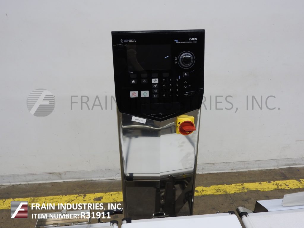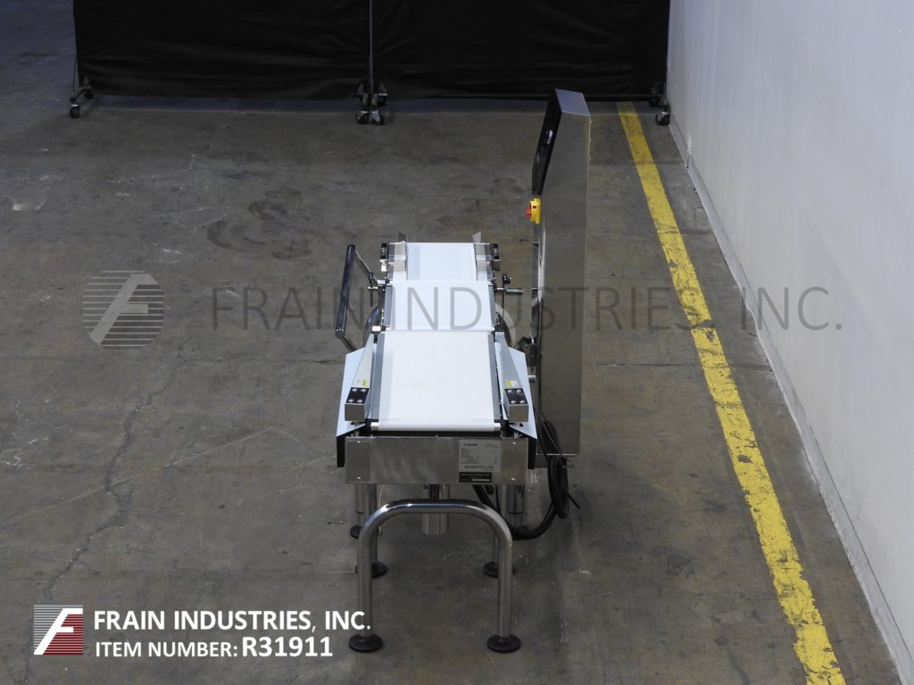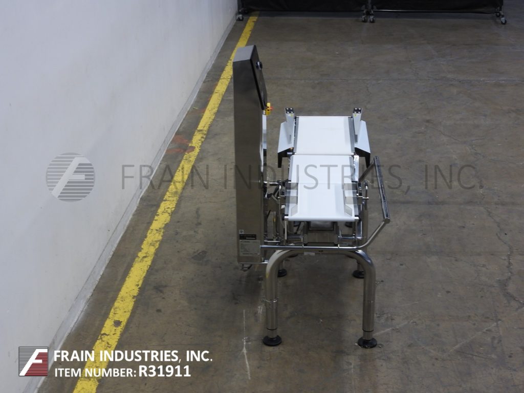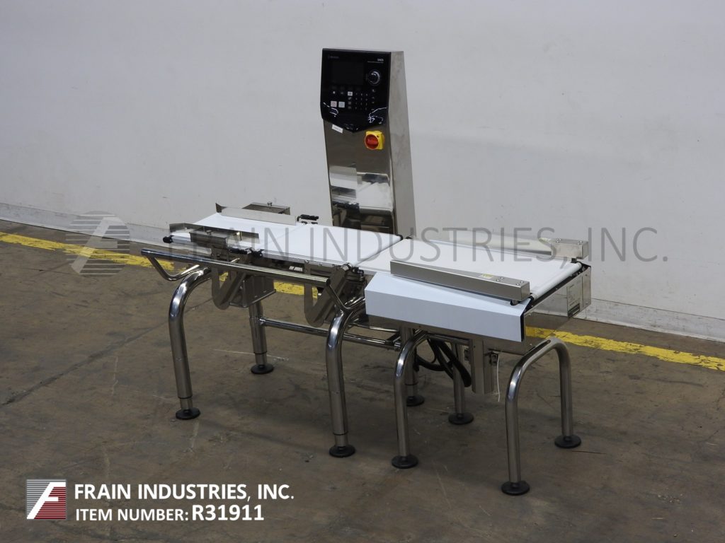 返回所有设备石田型号DACSGNRE060A23/SSMB从左到右,不锈钢,带式校验秤。额定从1到240项目每分钟带速度高达120英尺每分钟-取决于材料和应用。重量范围60 - 6000克,最小分级率0.5克,精度+/- 1克。温度:0°C ~ 40°C,湿度30-85%,无凝露。配备(3)白色聚氨酯产品皮带(1)12-1/2"宽x 17"长饲料带(1)12-1/2"宽x 17"长双梁负载传感器和带(1)12-1/2"宽x 29"长放电带和双机械拒绝臂30"饲料和放电高度。控制柱带有触控板控制器和LED显示,带有e-stop。输送机安装在高度可调的不锈钢底座框架上。
