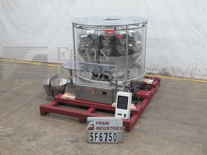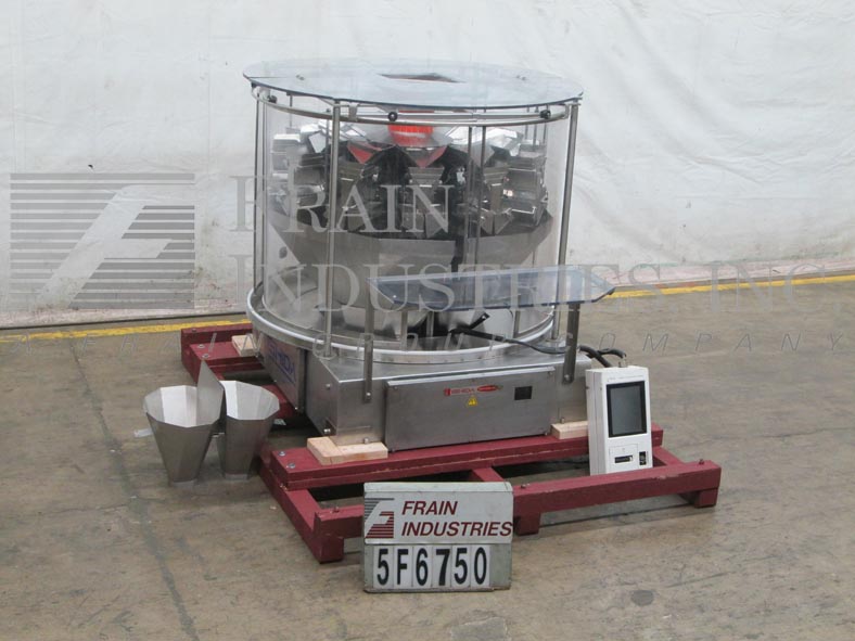 返回所有设备ISHIDA CCWZ212P-D / O5,12头,不锈钢,旋转组合,称重秤系统评分为20〜80的每分钟重量 - 取决于材料和应用。体重量:4至500克,精度+/- 1克,最大体积为800cc(单次倾倒)。配备双梁应变仪负载电池,径向馈电槽,(12)5“长x 4”宽x 5“深不锈钢凹坑桶,6”长x 3-1 / 2“宽x 4”深×4“深凹陷不锈钢称重桶(每个进给铲斗2)和每次产物3套3套,脂肪纤维排放槽。Ishida Condlerer并安装在60“x 48”不锈钢基地上。单位提供高速处理,头部较少,能够称重两种不同的产品,因为一对桶称重铲斗设计,每个较大的池进料桶。