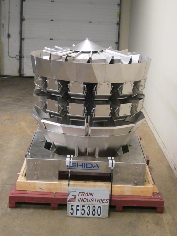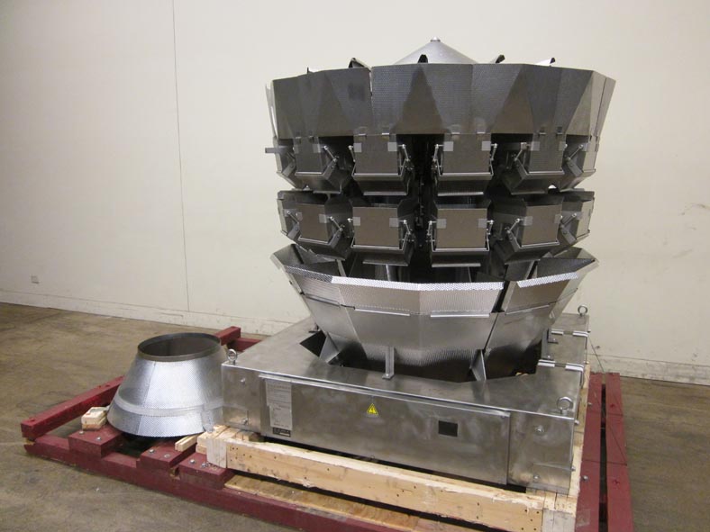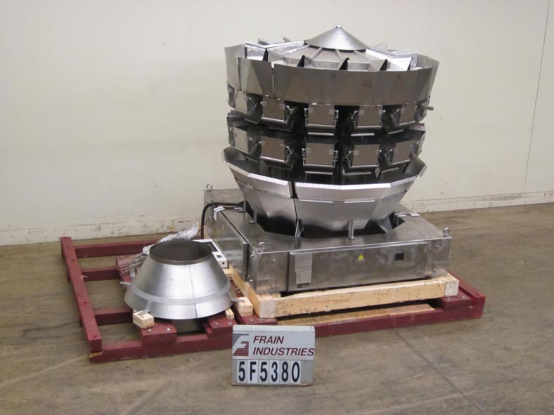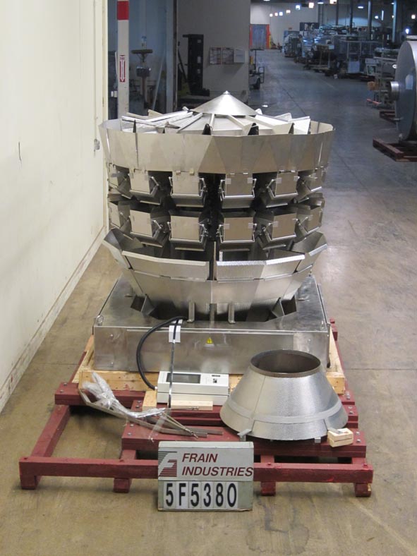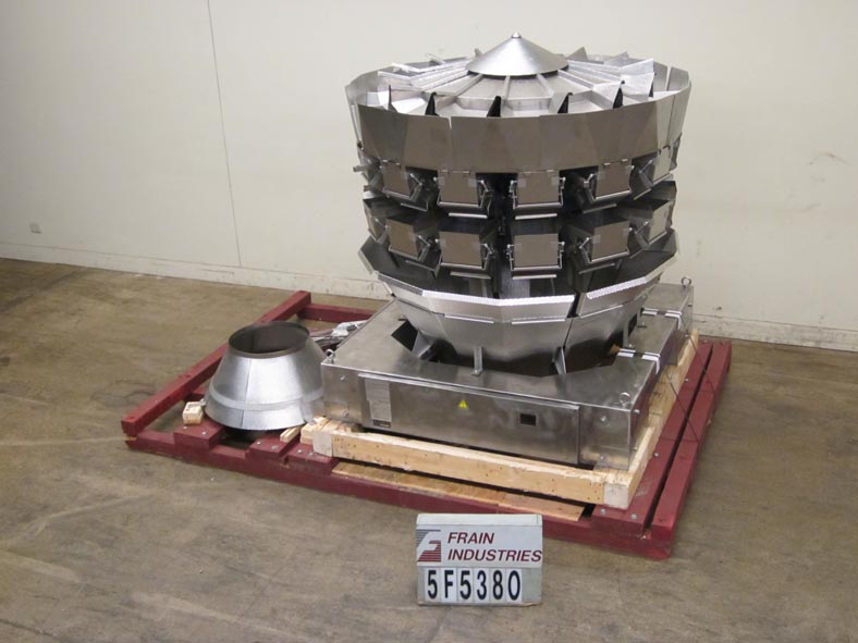 返回所有设备石田型号CCWZ214WS60WP, 14头不锈钢,凹形桶,旋转组合秤系统额定重量为每分钟40至120磅-取决于材料和应用。重量范围:150克(0.1磅)至5000克(11磅),最大容积为15000毫升,最低重量为0.5克,最大重量为5000克。配备6升不锈钢酒窝产品料斗,(14)8"长× 7 '宽× 9"深重量和(14)8"长× 7-3/4"宽× 10"深收集,不锈钢酒窝桶,双梁应变计负载传感器,单卸料槽,防尘和防水结构。16位微处理器和高密度触摸屏控制与等离子显示。
