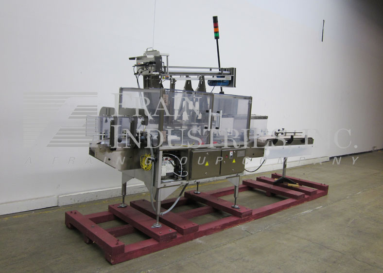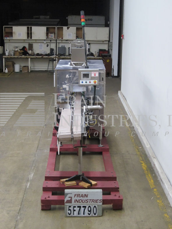 返回所有设备Holmatic Model PH-41P,自动,不锈钢,内联过失分别从60〜200盖/分钟升级 - 取决于材料和应用。配备175“长X 4-1 / 2”宽塑料Delrin输送机,可调节导轨,饲料中的星形轮,具有36英寸的长旋转旋转链集装箱处理输送机,带圆形集装箱夹具口袋,48“长动力纺纱辊盖杂志随着动力滚子压缩部分,夹具然后打开并释放输送带,没有盖子空气RAM拒绝。控制面板有带有开始/停止和e-stop按钮的面板视图,没有容器没有盖子,可变速度控制,互锁的Lexan Guarding和Statis Light Bar。安装在高度可调底座上。