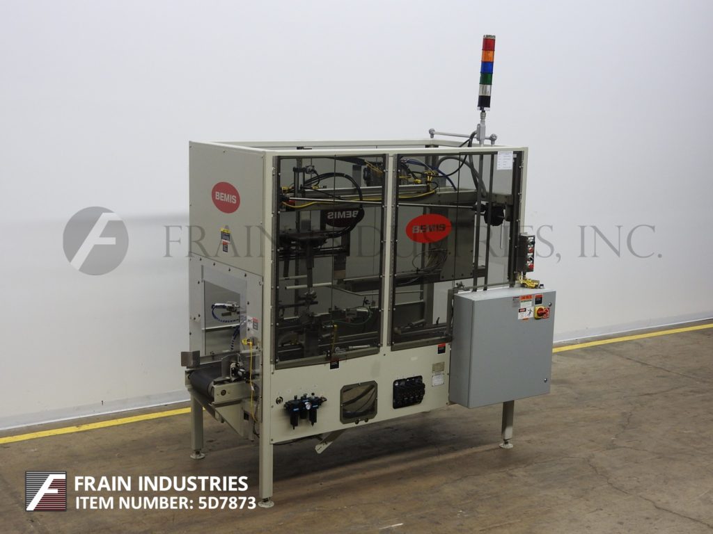 返回所有设备Bemis 157938,自动,袋在盒打开,锥度额定高达12箱每分钟-取决于材料和应用。盒子尺寸范围:7"至18"的长度x 7"至16"的宽度x 7"至17"的高度。配备4角盒正面机械开卷接触,正面袋顶部控制,盒监控光眼,30" H进给,92"长x 10"宽盒传送带。具有A/B SLC 5/02 CPU,屏障保护,状态灯条,E-stop,手柄高度和宽度可调和拇指螺钉的长度调节。解开袖口填充聚乙烯袋从一个波纹的情况下,收集袋顶部和应用胶带周围的袋颈部。