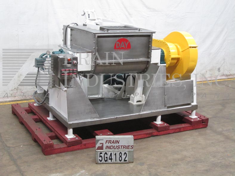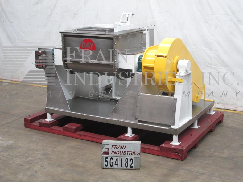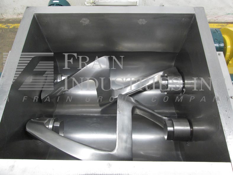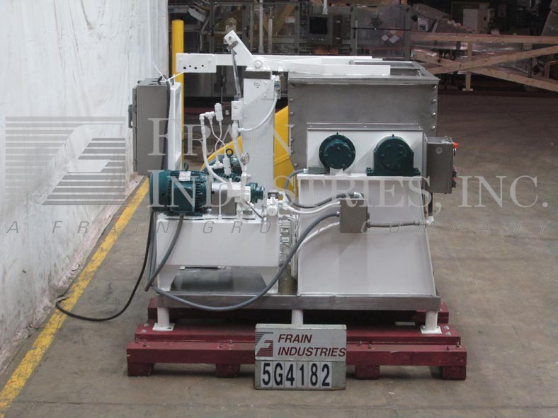 返回所有设备J. H. Day 18Ft³,134加仑,不锈钢双臂Sigma刀片搅拌机。配备38“长x32¾”宽x 27“深(内部尺寸)x 9/16”厚的单壁混合槽,带2个揉刀刀片。倾斜槽用5HP液压电源包放电,43“长x 38”宽x 5/16“厚不锈钢液压操作盖20”长x 16“宽通道和不锈钢安全网格。安装在98”Long x 71“上安装宽x 9“高不锈钢平台。