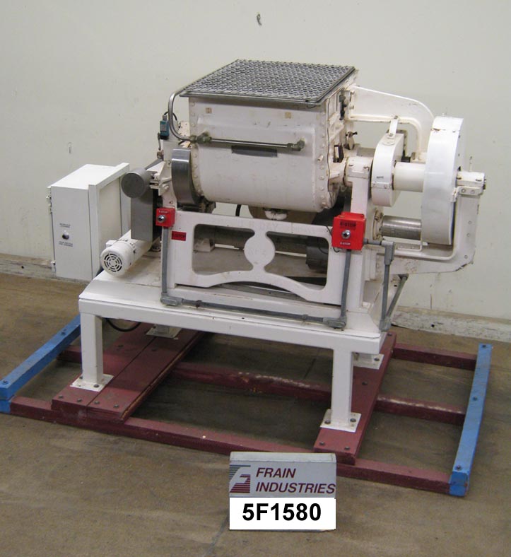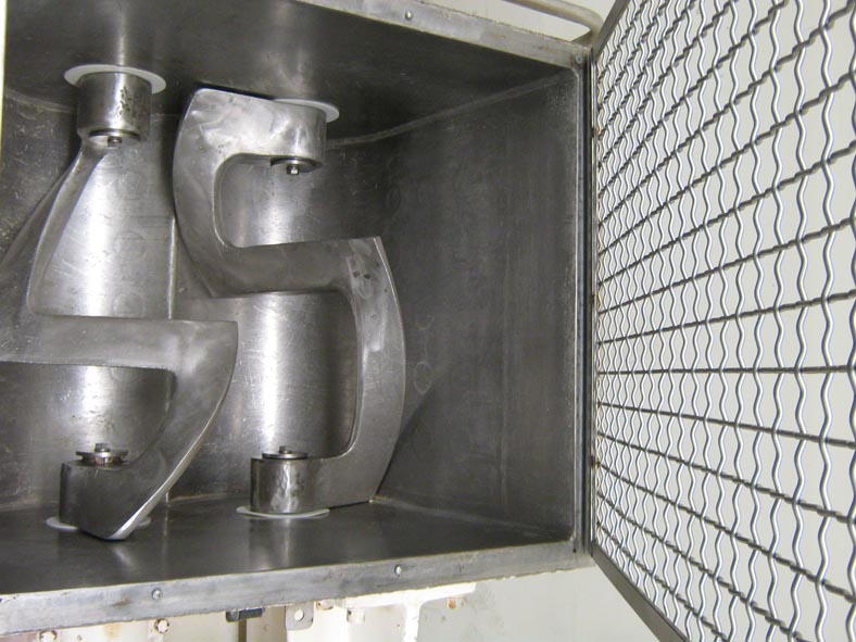 返回所有设备双臂不锈钢,夹套,重叠西格玛叶片搅拌机,总容量75加仑,工作容量45加仑。混合室尺寸:26"长x 30"宽x 26"深。配备翻转式安全篦,不锈钢接触部件,全护套额定80 psi @ 324f, 15马力主和1马力倾斜电机与链条驱动器。按钮控制,E-stops和电气安全联锁。