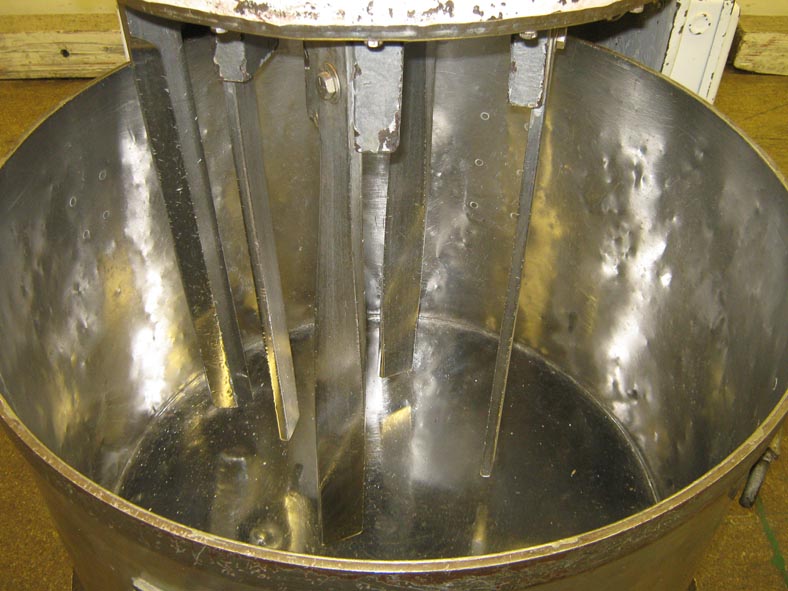 返回所有设备50加仑,双运动,垂直小马搅拌机。碗尺寸:28“直径; 20”深。配备旋转不锈钢混合碗,手工曲柄可调高度混合头,安装在主轴,挡板上的四个搅拌器刀片,A / B开始停止Contolrs。主轴沿相反方向旋转到碗的旋转,提供一种行星混合作用,其适用于粘性和粘性产品以及潮湿的粉末。