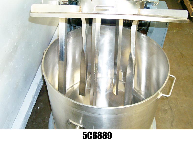125加仑,双运动立式小马混合器,最大容量137加仑,工作容量125加仑。最后的搅拌器转速35转,碗21转。本机配有304不锈钢手动升降盖和搅拌器。碗测量40" X 40" X 31"H和304不锈钢构造,碗。