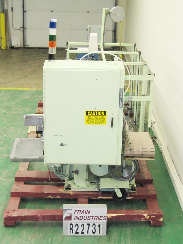返回所有设备琼斯CMV5,半自动连续运动立式热熔胶纸箱机。纸箱尺寸范围:1"至4-1/4"长度;3/4"到4-1/4"宽度;深度2-1/2"至8"。配备三链驱动5"中心,纸箱杂志与2杯往复挑选和放置,5 '产品负载区域,诺信热熔胶系统,压缩卸料皮带和中央润滑系统。其他功能包括艾伦布拉德利SLC 5/02 PLC, Electrocam 5000系列PLS和Lexan保护。安装在施法者。