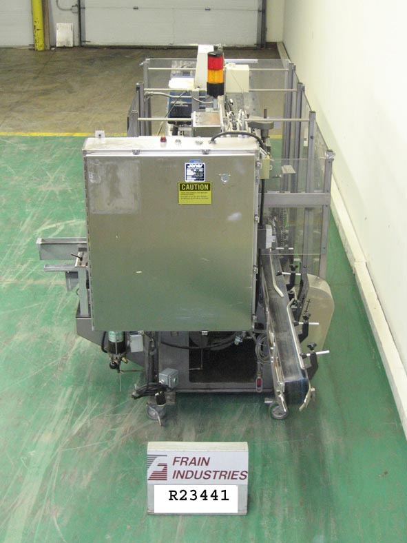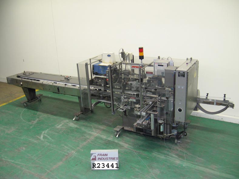 返回所有设备Jones型号CMV6,半自动、连续运动、垂直、热熔胶纸箱机,额定速度为每分钟40至120箱,具体取决于材料、应用和操作员的灵活性。纸箱尺寸范围:长度为1-1/2英寸至5-1/4英寸;宽度为1英寸至4-1/4英寸;深度为3英寸至9英寸。配备纸箱库、往复式pic-n-place、3链可调(设置在6”中心)、18'产品装载区、Nordson热熔胶系统、带图案控制器、尺寸规用于转换、纸箱压缩、75”长x 5”宽卸料输送机、卸料时的气动纸箱拒收、带电气联锁的屏障防护、,急停和状态指示灯指示杆。安装在带有锁定脚轮的钢制it框架上。