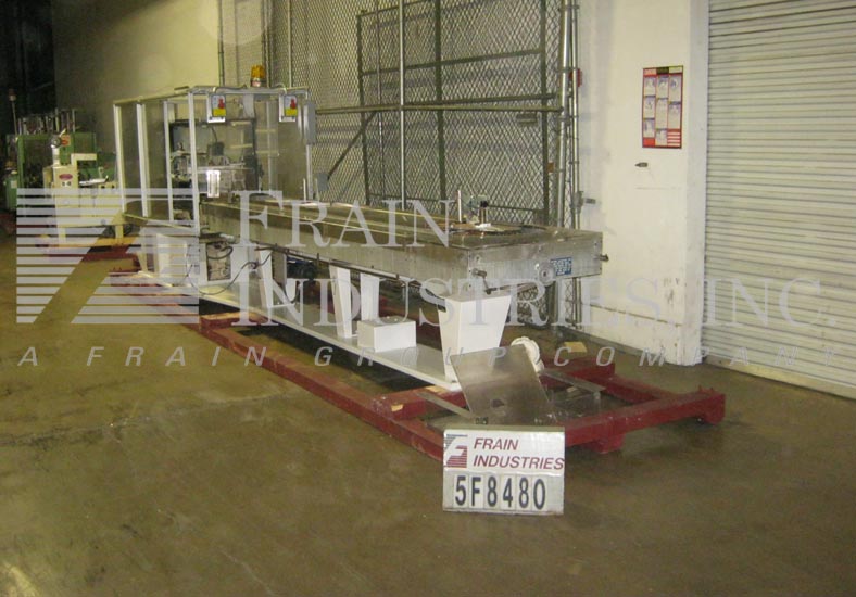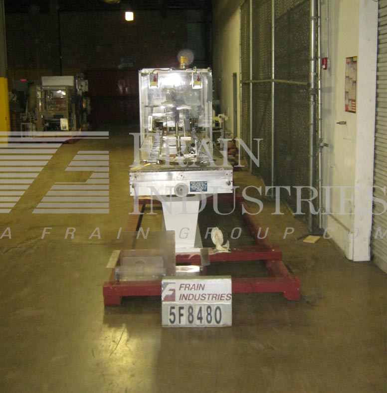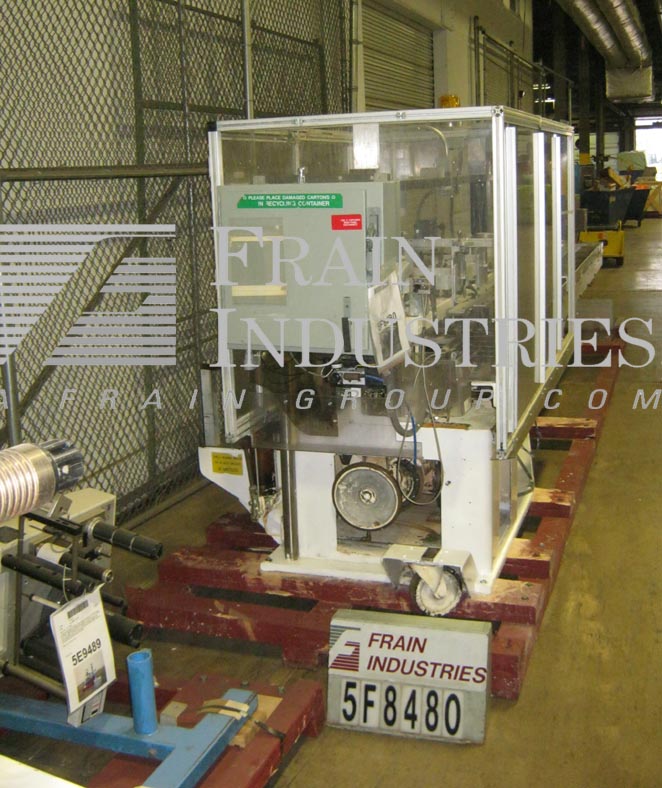 返回所有设备琼斯CMV5型,半自动,连续运动,垂直,反向折叠,每分钟40到120个纸箱-取决于材料,应用和操作熟练度。配备(3)链可调设置在5英寸中心。纸箱尺寸范围:1"至4-1/4"长度;3/4"到4-1/2"宽度;深度2-1/2"至9"。配备29"长空白纸箱杂志,振动纸箱推手,往复挑选和放置,11 '长的负载区域每边和36"长x 4-1/2"宽的产品排出输送机。控制面板采用A/B PLC,具有慢、快真空开/关机启动/停止控制,带有电止和状态灯。安装在基础框架与lexan保护和脚轮。