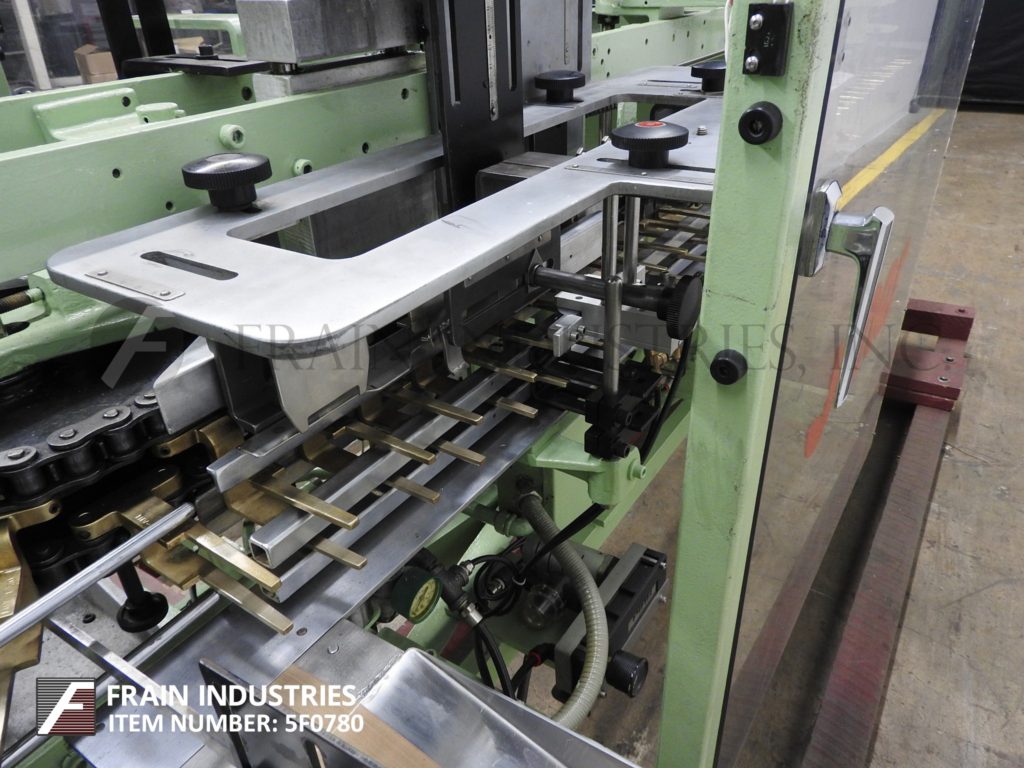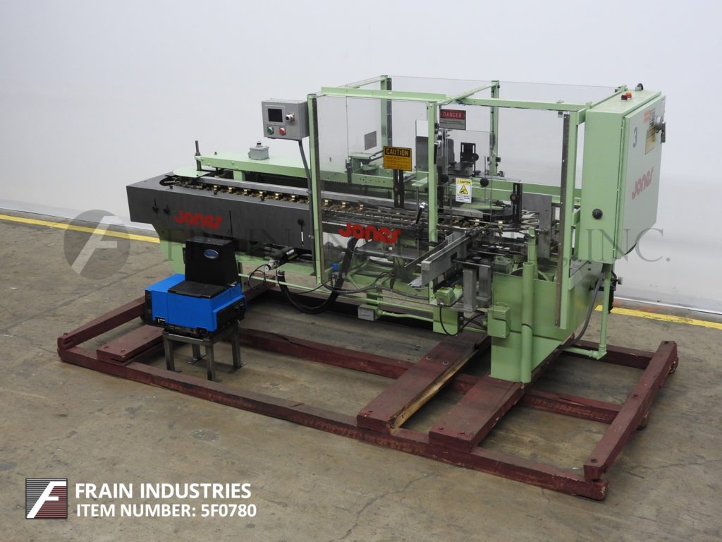 返回所有设备Jones Model IMv5,半自动,间歇运动,垂直塞克箱评分为30至60康马速度,取决于材料和应用。纸箱尺寸范围:1“至4”的长度;3/4“到2-3 / 4”的宽度;深度2-1 / 8“至7”。配备两个链条系统,套装5“中心,24英寸长杂志,往复吸盘式照片,48”长负载区域每侧,小翼片塔克,主要襟翼近,自有真空系统,e-stop和安全守卫。