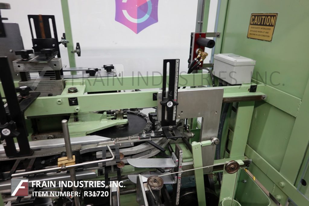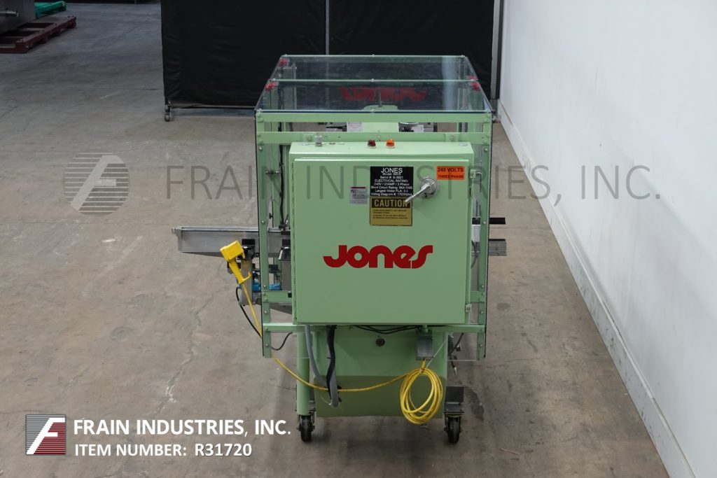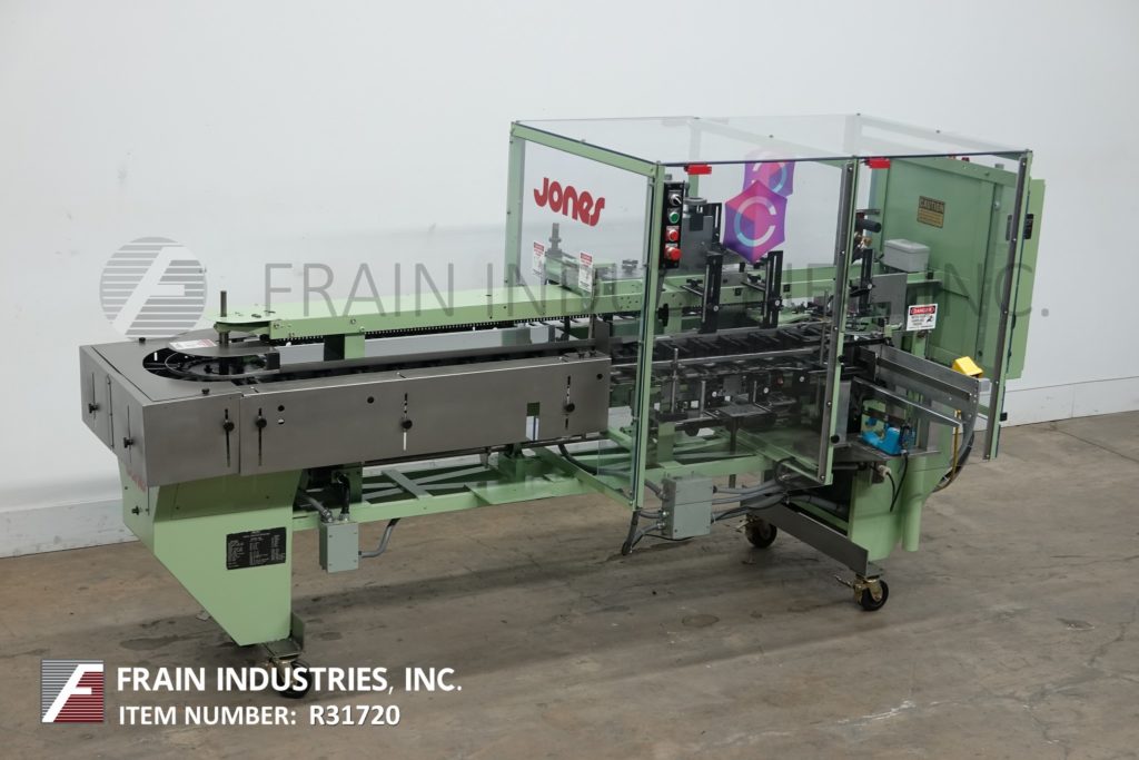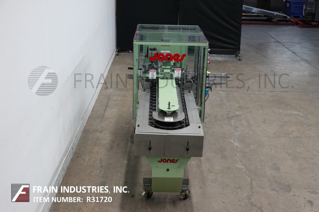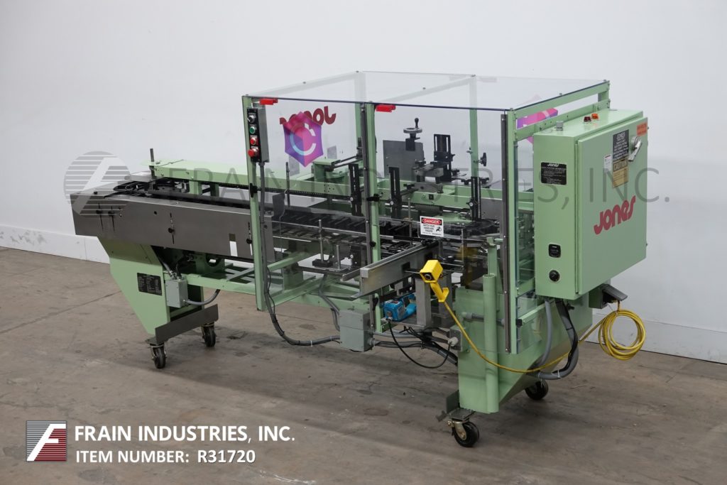 返回所有设备琼斯IMV5型,半自动,间歇式,立式底胶,顶折纸箱。根据材料、应用、机器配置和操作熟练程度,每分钟可装10至45箱。纸箱尺寸范围:1"至4"长度;宽度为3 / 4“至2¾”;深度2¼“至7”。配备(2)链固定设置在5"中心,24"长的纸箱杂志,往复吸盘picn -place, 48"长的负载区域每边,诺德森热熔胶系统与模式控制器,主要皮瓣折缝和次要皮瓣关闭。控制面板有开/关开关,变速拨盘和e-stop。安装在重型框架与安全防护。