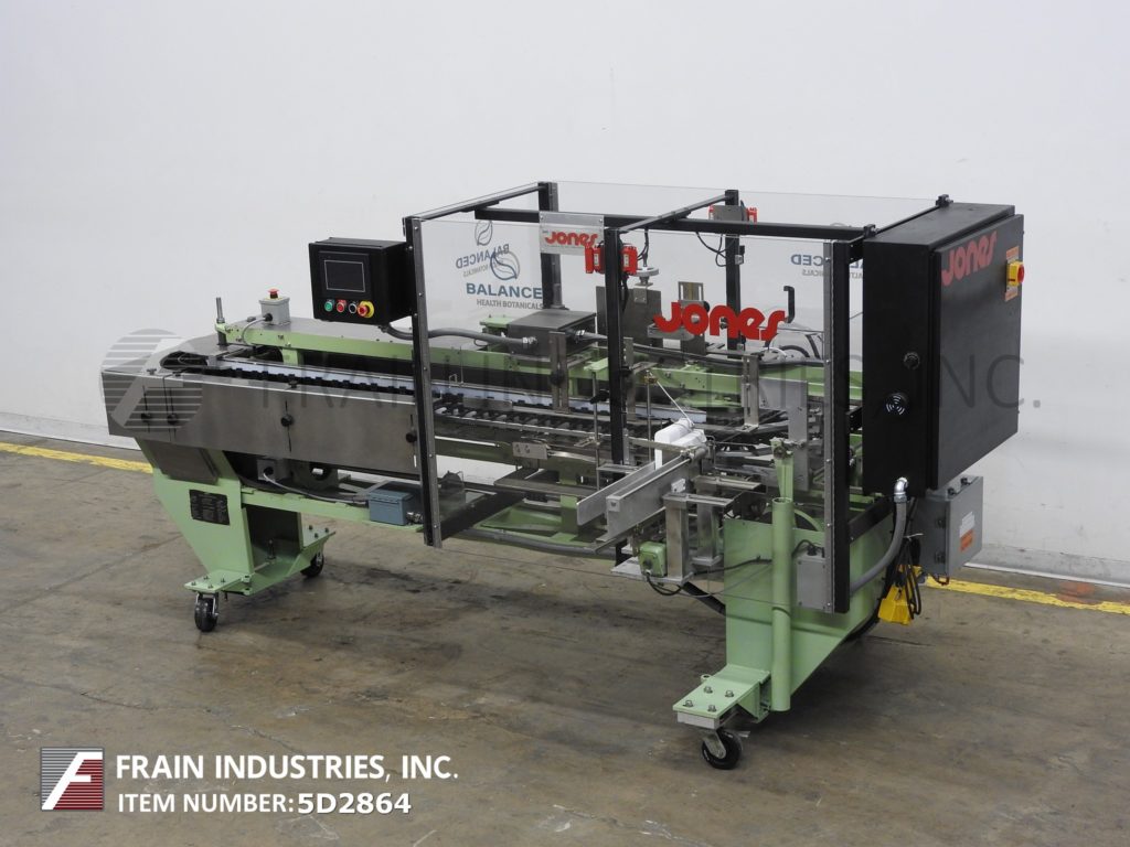 返回所有设备Jones IMV5,SEMI自动间歇运动垂直盒装速度,可速度从30到60纸盒每分钟 - 速度取决于材料和应用。纸箱尺寸范围:1“ - 4”(l)x 3/4“ - 2 3/4”(w)x 2 1/8“ - 7”(深度)。机器目前为5英寸中心设置为反向塞克箱。配备PLC,往复挑选和放置纸箱馈线和5'产品负载区域。