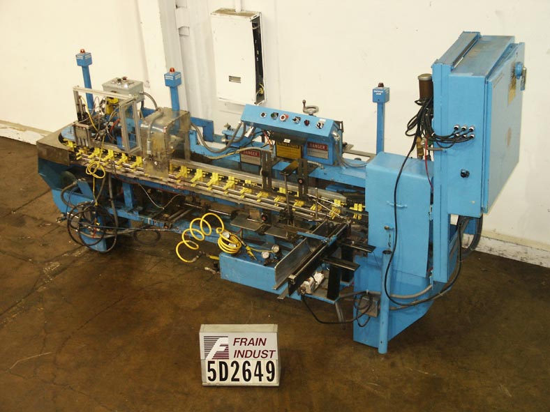 返回所有设备琼斯IMV5,半自动间歇运动立式纸箱机,速度可达每分钟10至45箱,速度视材料和应用而定。纸箱尺寸范围:1"- 4"(长)x 3/4"- 2 3/4"(宽)x 2 1/8"- 7"(深)。机器目前设置为反向折叠纸箱在5 "中心。配备:装瓶机,自动挑选和放置纸箱给料机,聚碳酸酯耳,4 ' (L)产品装载区-(4 '在一边,4 '在另一边)。安装在重型脚轮上的单元便于移动。