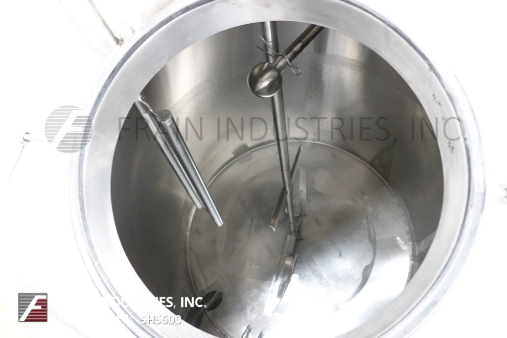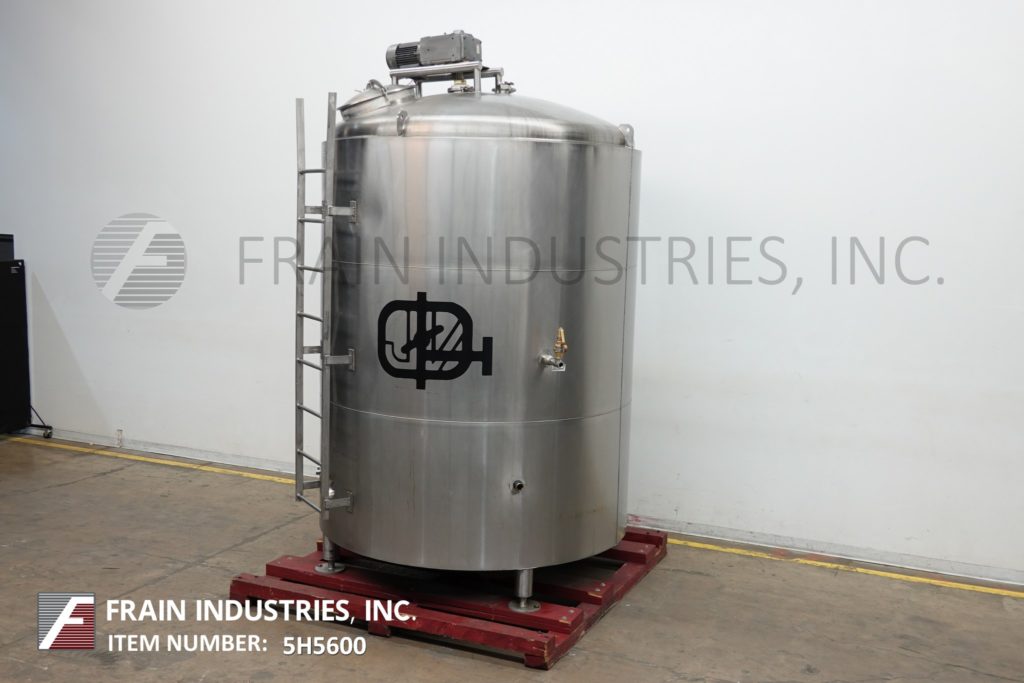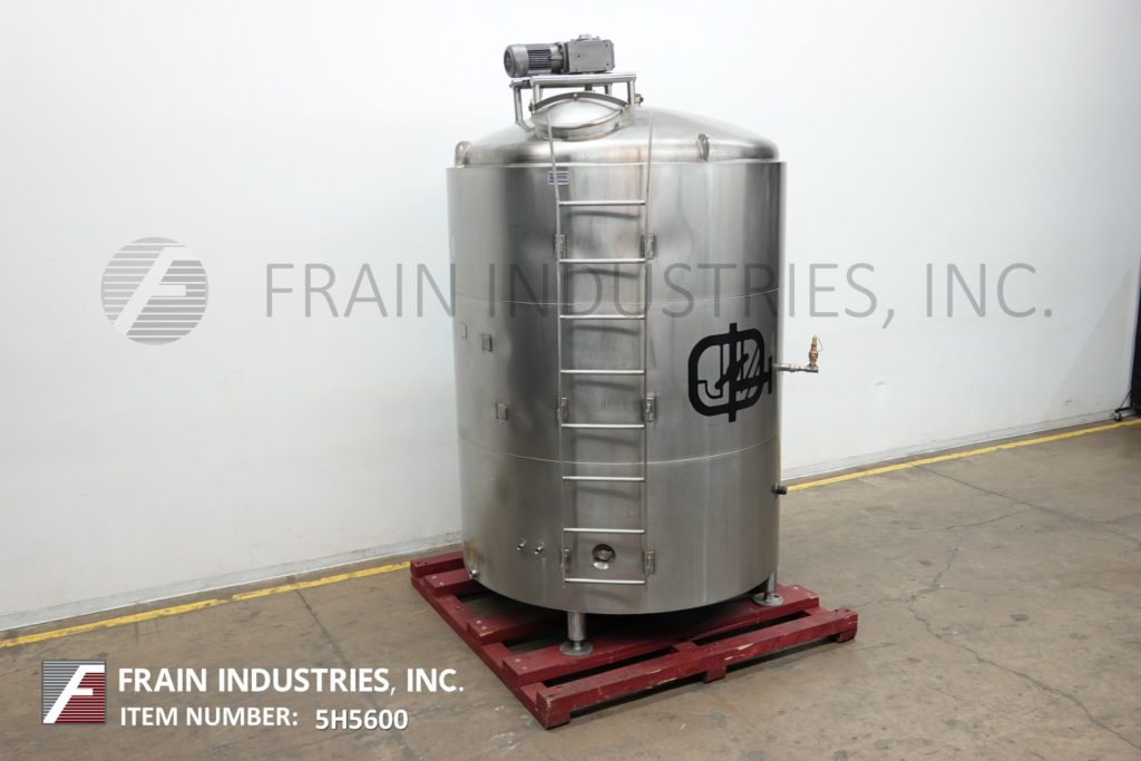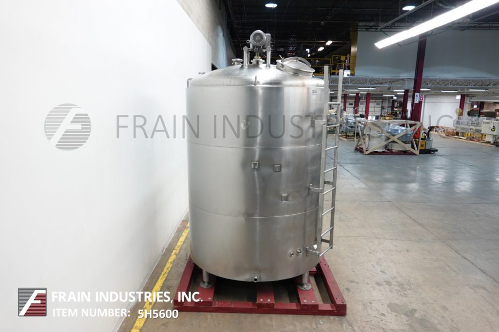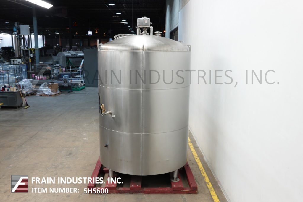 返回所有设备JVNW公司,2000加仑容量,304不锈钢夹套和绝缘处理罐。容器尺寸:直径与100" 个80" 直壁。装备有圆顶顶部具有18" 直径顶部铰接男人方式,(2)CIP喷雾由2供给球‘OD / 1.5’ID卡箍件,(2)热电偶套管,5 HP顶部安装扫描搅拌器和21/2“OD / 2“ID卡箍底侧排出用10”离地间隙。