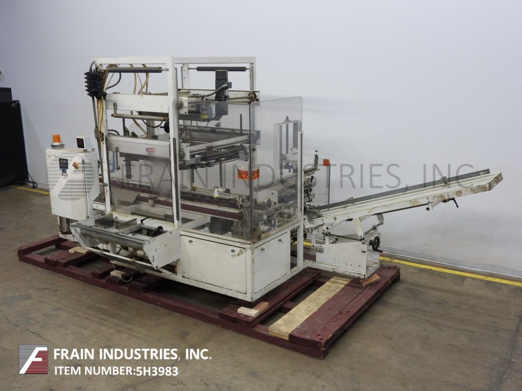 返回所有设备K&R,型号PBI32,自动,案例竖立器和袋内插入底部锥度。每分钟5至20件案例 - 取决于材料,应用和机器配置。案例尺寸范围:12“至22”的长度;9“到16”的宽度;高度为8“至18”。配备72英寸的长空盒杂志,吸盘真空镐和放置,116英寸长侧夹持带式输送机,小襟翼近,袋子打开/插入机械手指夹具,空气抽空真空系统带来多袋子齐平壳体的五个内侧,主要襟翼文件夹,2“底壳锥形,A / B PLC,按钮控制。安装在lexan安全守卫的基础框架上。