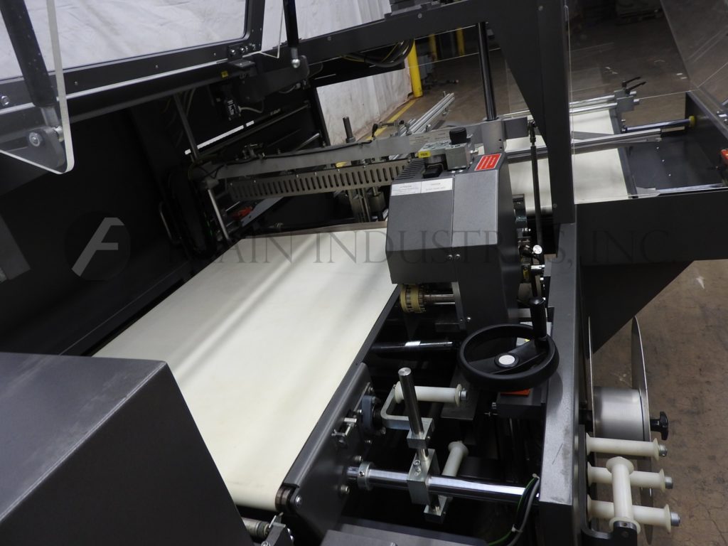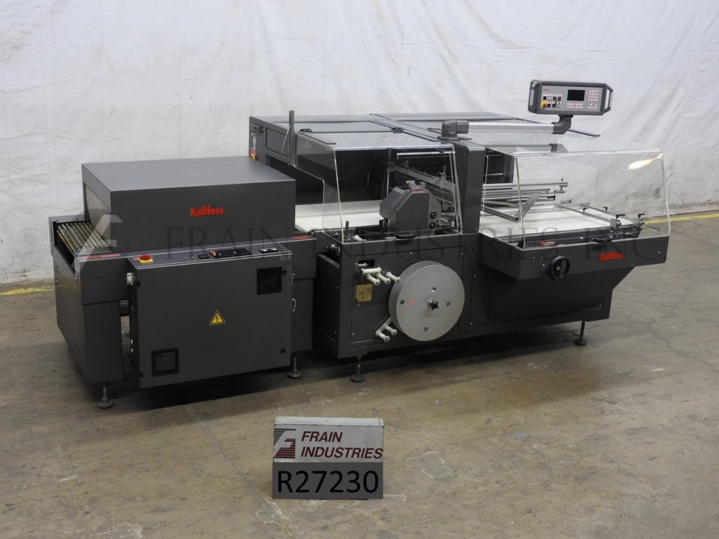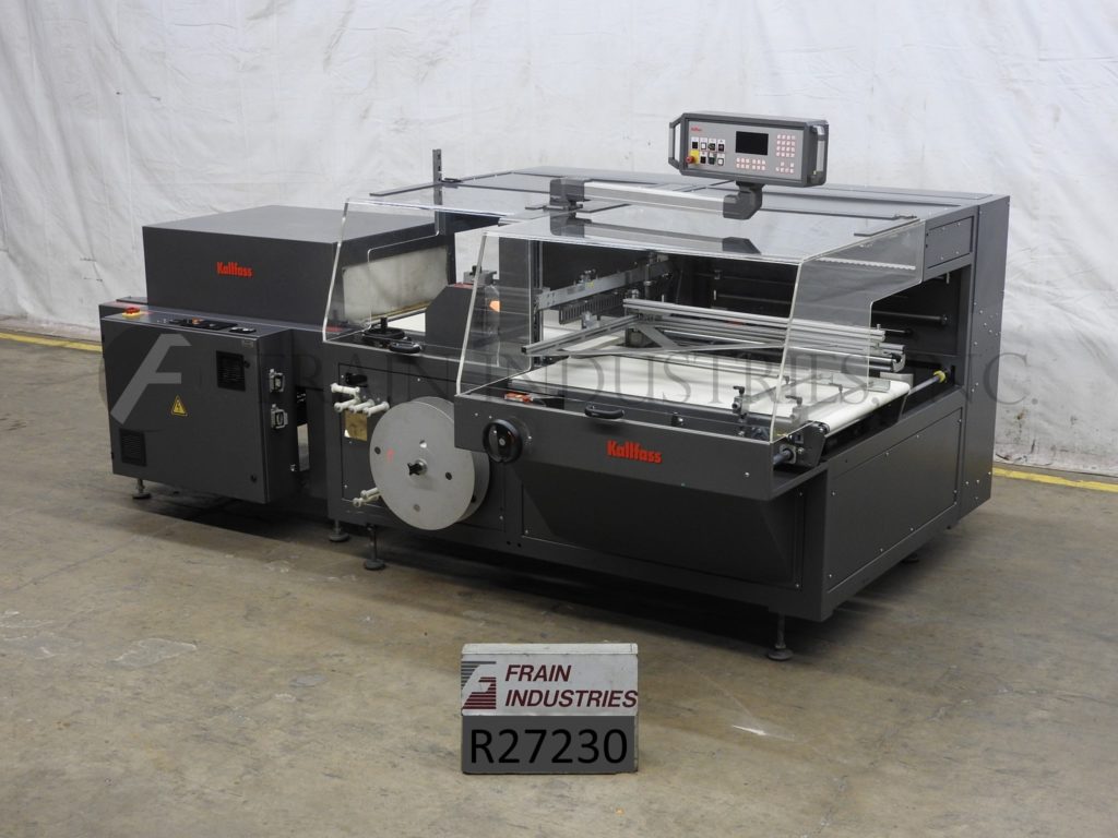 返回所有设备Kallfass, Universa 700nt全自动,侧封,过流,收缩包装,隧道。额定从5到50周期每分钟与包的数量-取决于材料,应用和机器配置。尺寸范围:4.75"到无限长度;宽度1“至27”;高度可达8英寸。配备27宽x 49“长进料输送机,可调节前,30”宽热刀交叉密封与12“垂直行程,边密封站与废料收集,联锁安全保护和触摸垫控制器。安装在高度可调节腿。薄膜规格:(中间折叠)宽度可达39“;直径可达12英寸。