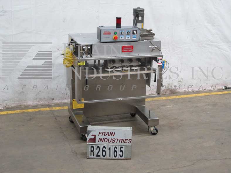返回所有设备KAPS-All Model FC8,半自动,不锈钢4站,8个主轴卡钳,每分钟20到400个容器 - 取决于材料和应用。帽尺寸范围:8毫米至120毫米,集装箱尺寸范围:1盎司至2-1 / 2加仑,能够处理所有类型的帽,包括塑料,金属或玻璃容器,包括适当的变化部件和手曲柄可调节快速转换。配备36“长X 1”宽单个集装箱夹具带,3站,6个主轴非损坏盖帽,带可调扭矩离合器。带主轴和夹持带的控制面板开/关开关和速度控制拨号,提升和较低的开关,开始,电子停止按钮控制和Statis Light。安装在不锈钢底座上,带脚轮,卷起现有输送机。