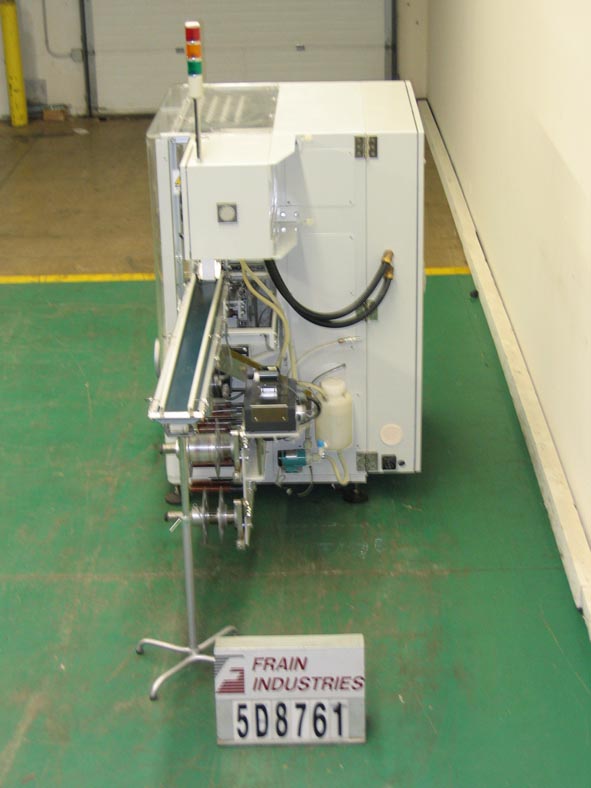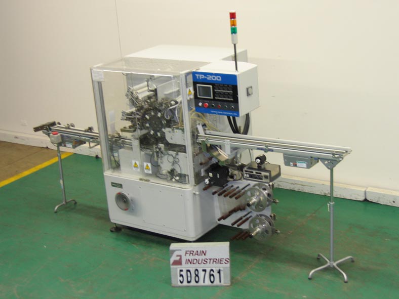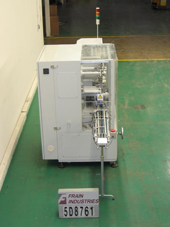返回所有设备Tenchi TP200,自动,间歇运动,8工位旋转,卷包装额定从40到120包每分钟。卷:高达50mm直径x高达110mm长。有5 1/2“宽× 29”L进给输送带,5 1/2“宽× 59”L出料带输送机,双膜卷,膜高达7“W,热卷膜编码器,离线墨水辊预热站,E-stop,可编程控制器,频率驱动控制器,数字操作面板液晶显示,和电子联锁屏障保护。安装在环氧涂层框架与高度可调脚和脚轮。最后运行覆盖在22毫米直径x 70毫米长卷。