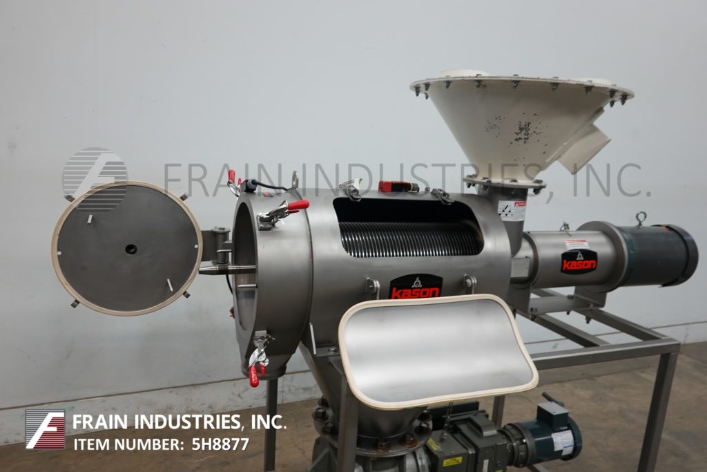 返回所有设备卡森,型号MO-3BRG-SS,连续,不锈钢,离心筛与磅每小时产品-取决于材料和应用。配备32“长x 16”OD筛选室与20“长x 12”宽边活节螺栓访问门和24“OD x 10“斜墙x 14“底部法兰产品料斗1/2”5日螺栓中心16“OD前铰链,螺栓,检修门联锁安全保护,桨和螺丝产品饲料,与1马力旋转气闸底部3“外径放电的尺寸不足的产品连接到10马力鼓风机和5“外径放电的尺寸过大的产品46”地板间隙。安装在不锈钢(4)腿框架上。