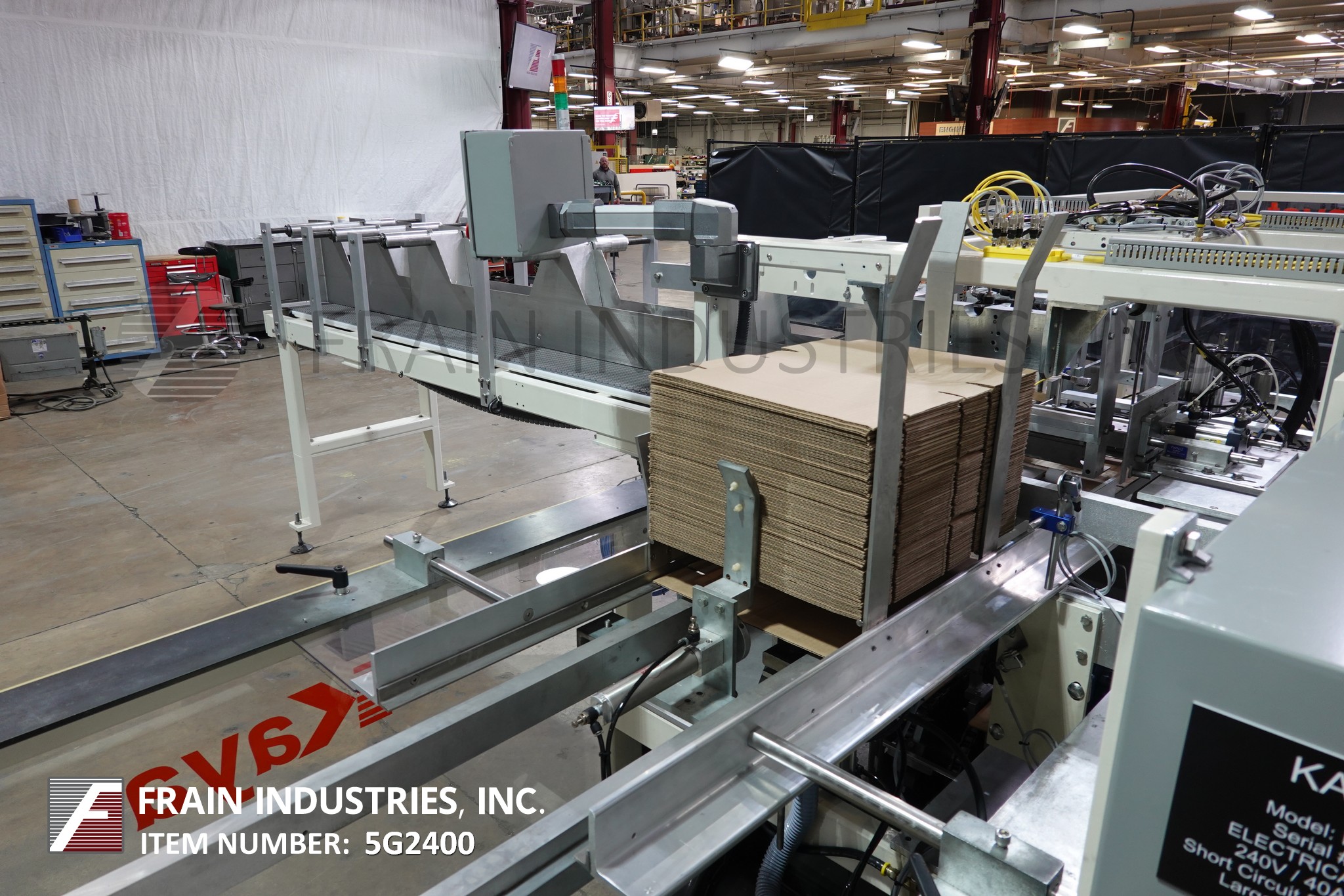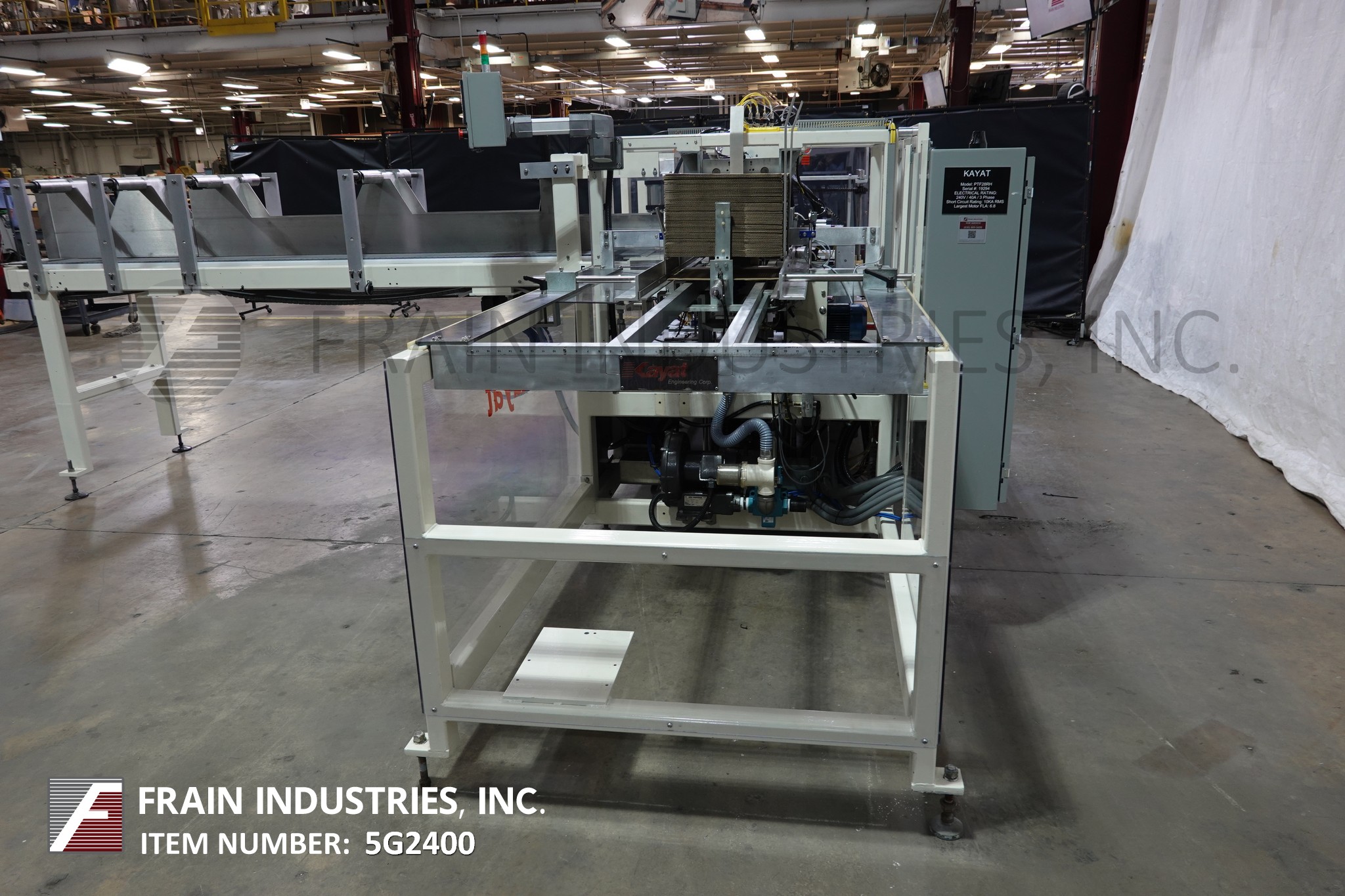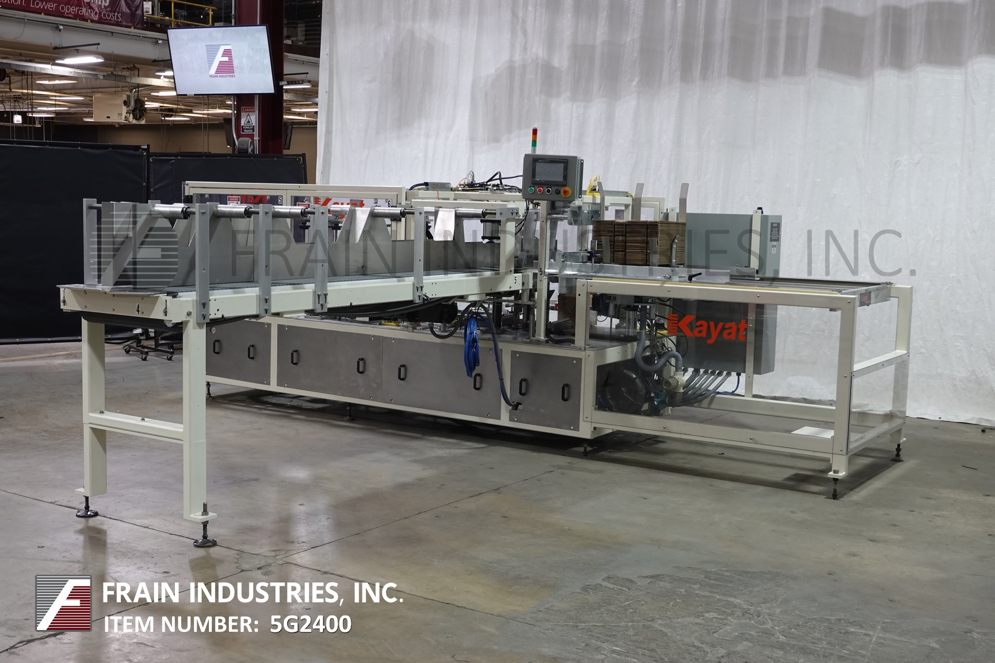 返回所有设备Kayat型号PTF28RH,自动,包装箱。外壳尺寸范围:8"至13"长度;宽度为8"至22";身高4英寸到13英寸;提升和俯仰(高度)至16英寸。配备了诺生热胶系统,联锁Lexan保护,中央润滑系统,PLS 5000电子凸轮,AB VFD, AB PLC。速度取决于材料,应用和机器配置。