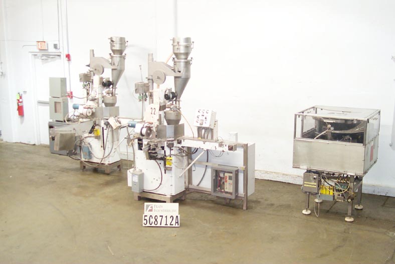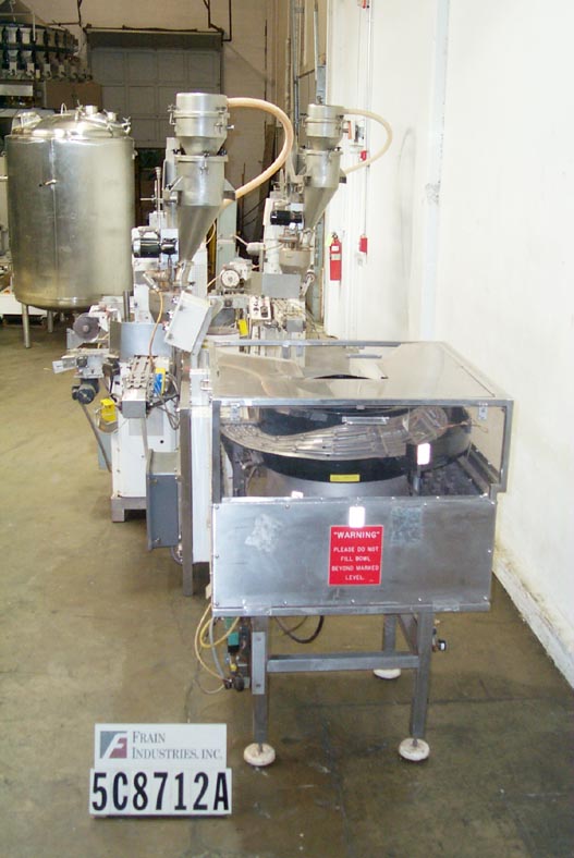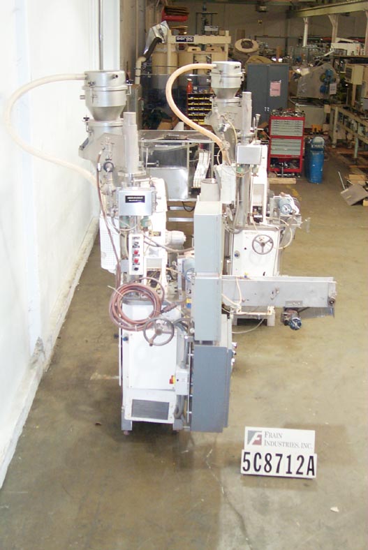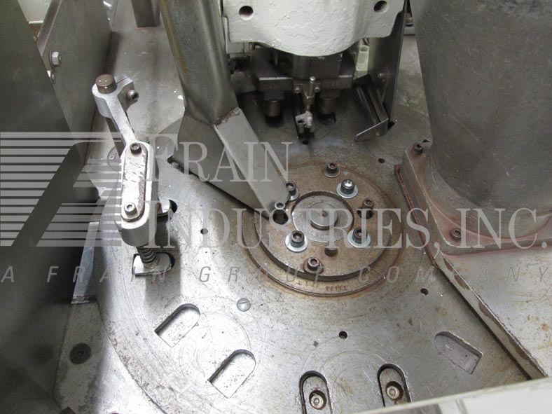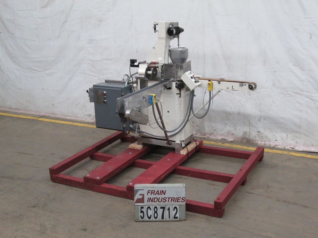 Back to All EquipmentAutomatic hydraulic single color powder press is capable of up to 30 compacts per min. on a single tooling set up and up to 60 compacts per min. on a double. The godet size range is from 20 mm to 89mm with a maximum depth of 8mm. Unit is equipped with 36" long infeed conveyor, powder hopper with auger stirrer (for free flowing products), cloth feed (filters out air and prevents powder from sticking to punch), and automatic discharge. Hydraulic PSI can be adjusted from 200 – 2,000 PSI. Overall dimensions: 67"H x 33"W x 75"L.