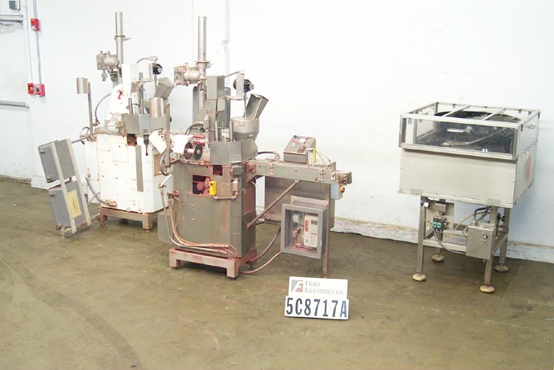 返回所有设备自动液压单色粉末机,每分钟能够为3至30块 - 取决于产品,材料和机器配置。凸起尺寸范围为20毫米至89毫米,最大深度为8mm。单位配备了36“进料输送机,用于手动放置前衣,粉末料斗与搅拌器,布料饲料(过滤出空气并防止粉末粘在打孔),并自动排出。