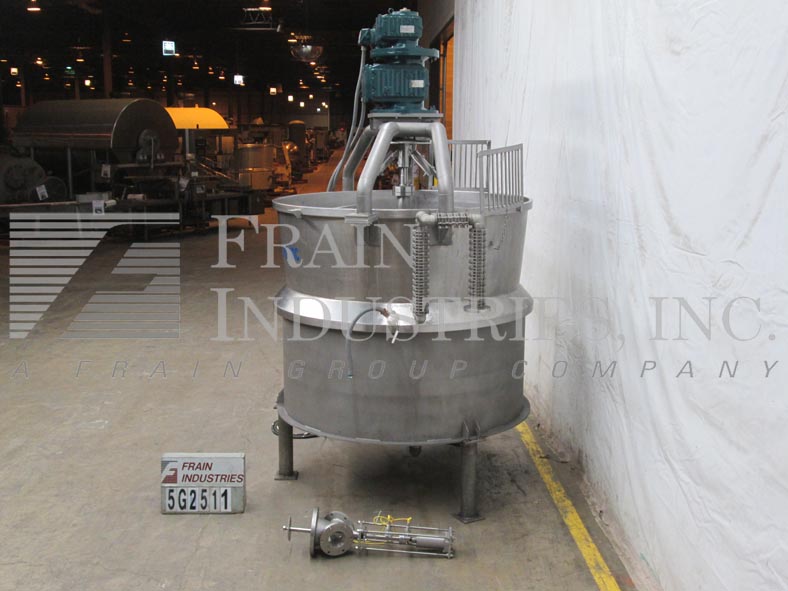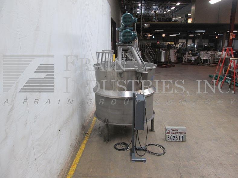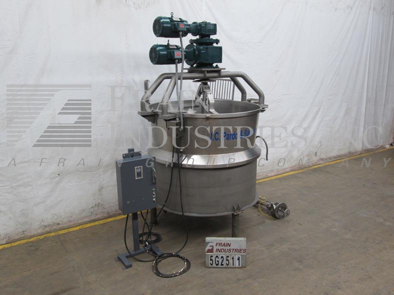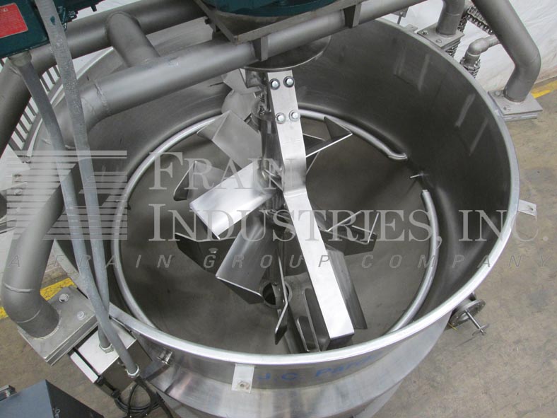 返回所有设备J.C. Pardo&Sons,700加仑,304不锈钢双动夹克水壶。船舶尺寸:66“直径; 23英寸”直壁。夹克评分:110psi @ 344°F。开放式顶部单元配有桥式安装的12个桨式圆锥形结构树内搅拌,由7½HP驱动器和外部扫描驱动器提供动力,由10 HP驱动器提供动力。直墙上的一个2½“OD /1¾”ID Tri-Clamp风格接入配件,直壁,两2英寸螺纹和两个螺纹夹套端口,温度探头和一个2“ID内部液体注入环,带有6”OD / 2“ID四个螺栓法兰入口配件。一个11“OD / 6”ID八个螺栓法兰中心底部放电,18“接地间隙。安装在带腿的不锈钢底座上。