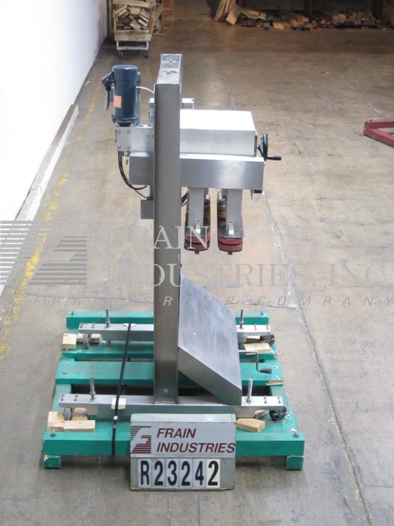 返回所有设备半自动,不锈钢,六个主轴夹,能够速度从60到150康复速度取决于材料和应用。容器:最多5 1/2“。帽子:来自(5mm - 110mm)。有双35”L x 3/4“H侧容器夹持带,手曲柄,盖帽头高度调节,驾驶主轴到夹持皮带调节,为单个主轴输入/输出调节,并安装在带有脚轮和高度可调腿的不锈钢框架上。