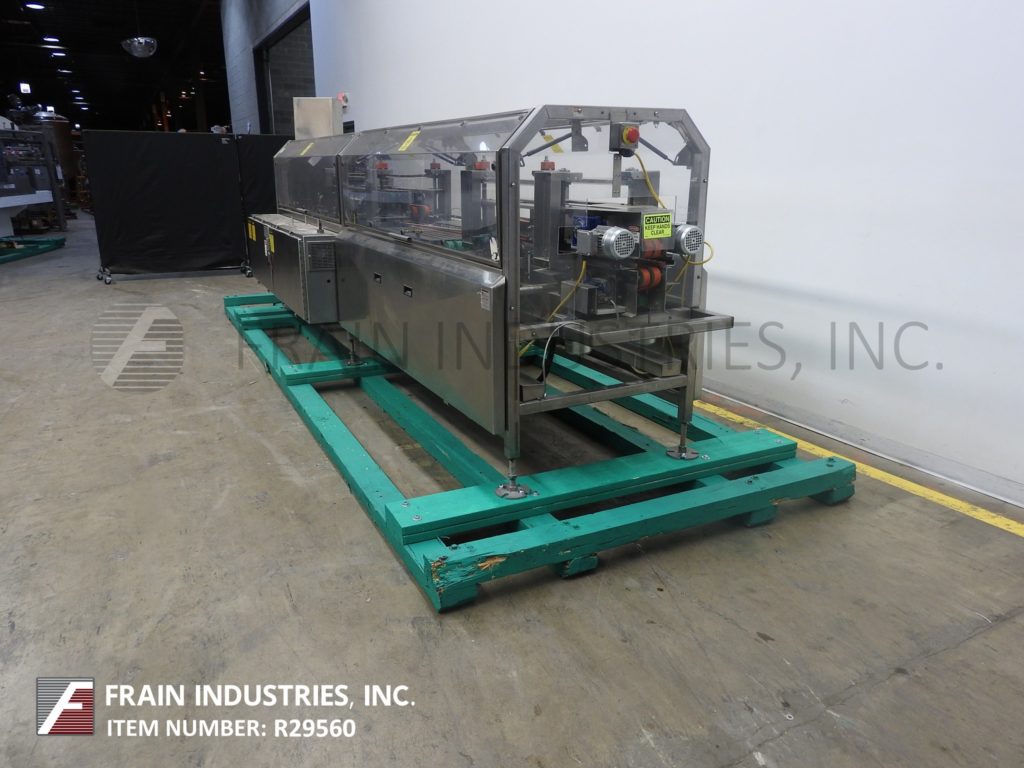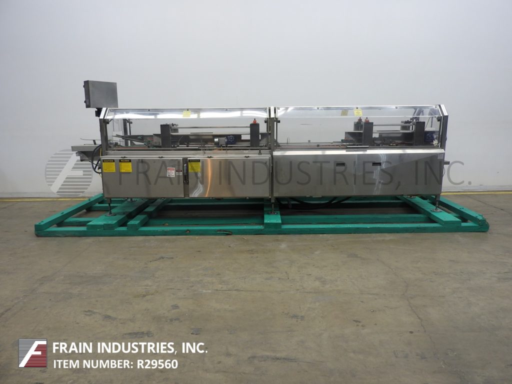 返回所有设备Kliklok型Genisis GLC,内联,不锈钢,高速,无轮,纸箱封口和热熔三封每分钟从30到200箱-取决于材料和应用。全不锈钢结构。纸箱尺寸范围:长度4"至15";3-1/4"至12"宽度;深度1-1/2”到5”。配备连续运动,无耳纸箱转移设计有1-1/2英寸宽的双聚氨酯皮带在饲料和排出部分。90度正面线纸箱翻转部分与果酱传感器在转折点和饲料部分与高架组装,热熔胶系统和辊压部分和Seko仪表。控制面板有带有面板视图的触摸板控件。安装在不锈钢底座上,采用连锁翻转式安全保护。