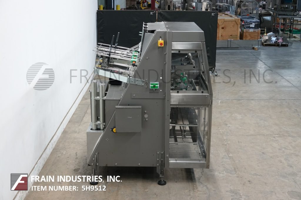返回所有设备自动,不锈钢,双头,托盘成型。额定从20到60冲程每分钟每个头与托盘的数量-取决于材料和应用。托盘尺寸范围:5“至16¾”长度;宽度4“至10”;深度为7/8“至4”,适当更换部件。配有双16”长空白托盘杂志,吸盘往复式位置,双闸板小襟翼和大襟翼折叠犁,莱克松带帽密封区域与提升检修门,96”长拖链托盘转移输送机设置在17”中心通过机器。控制面板有启动、停止和e-stop按钮控制。安装在重型不锈钢底座上,带有脚轮和高度可调节的腿。