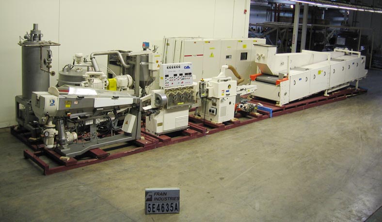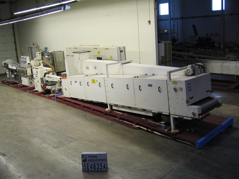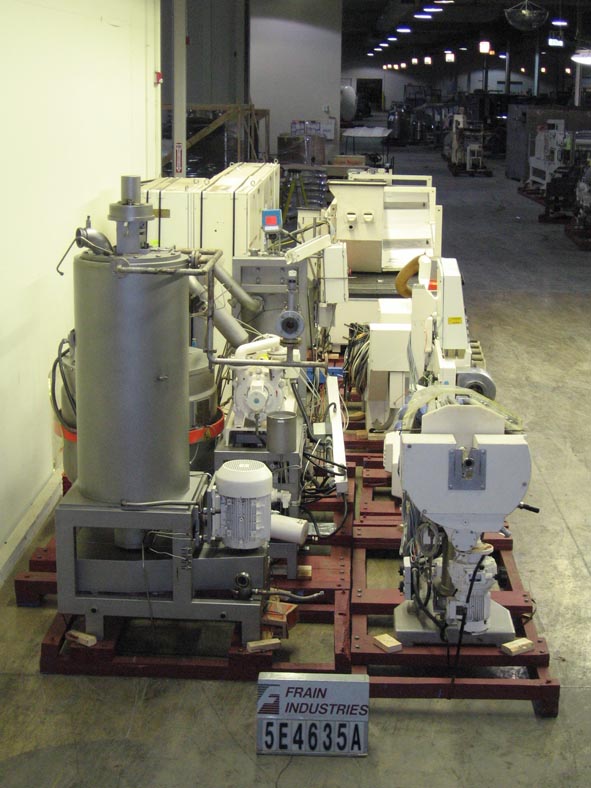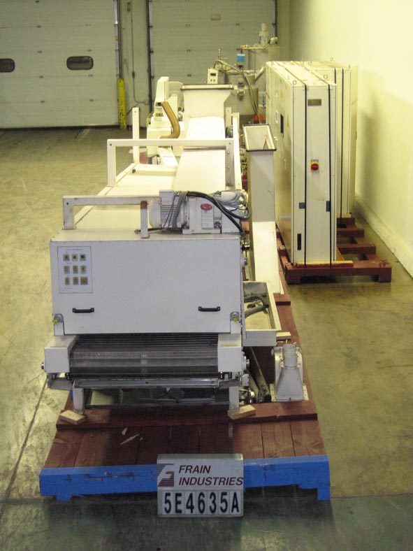 返回所有设备Klockner Hansella,完整的称重,溶解,旋转真空,烹饪和成型系统额定从200公斤到1000公斤的产品每小时-取决于材料和应用。可用于硬糖、硬中馅糖果、软焦糖、果冻及耐嚼糖果制品。生产线包括Rotomat连续旋转蒸煮系统,这是一个晶体自由溶解,预蒸煮和真空蒸煮系统的糖水葡萄糖浆液与连续蒸汽加热,保持罐和转移泵和下游焦糖化过程的Caramaster。Strada成型系统用于连续生产成型糖果(未填充,高填充液体)层压硬糖,耐嚼糖果,太妃糖,泡芙生产的未填充到高填充质量糖果,以15mm至180mm每小时的绳速,由(6)不锈钢锥形辊组成,网纹辊测量72“长x 4”OD基地和1 - 1/2“OD提示,用于产品塑造成4辊索斯金格精确定心系统内的充填质量糖绳通过辊头绳子上浆机、绳刀,然后冷却隧道与冷水机组和空气处理系统。安装在重型框架上。