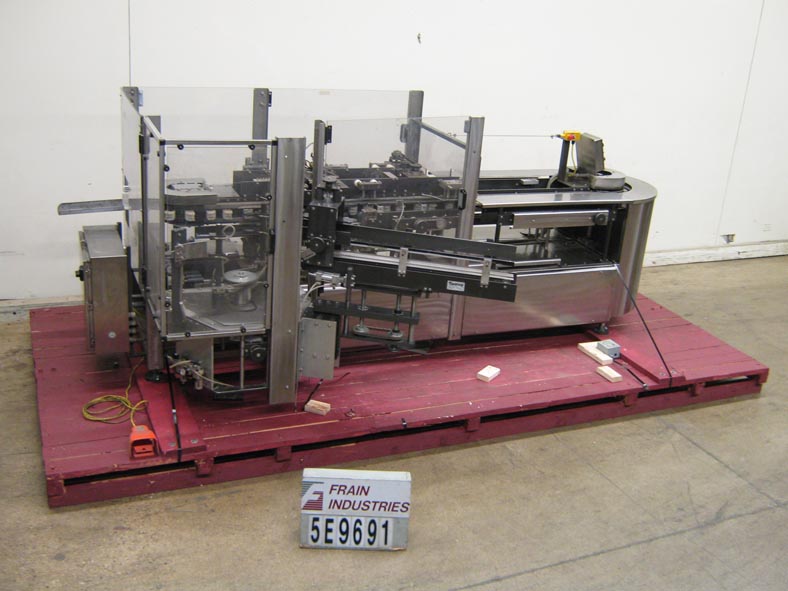 返回所有设备Kodiak型号601-120,半自动,不锈钢,连续运动,热熔胶胶卷,每分钟40至120箱 - 取决于材料和应用。两个链单元设置在9“中心。纸箱尺寸范围:2”至7“长度; 1/2”到3“宽度; 2”至7“深度(具有适当的变化部件)。配备72”长自动(2)连锁空白纸箱杂志,(2)头旋转电纸到位,48英寸手动装载面积每侧,小凸台闭门器,Nordson Pro Blue H / M(2)枪胶系统。控制面板有一个/B控制器带Saftey守护和脚踏板慢跑。安装在重型底座上。
