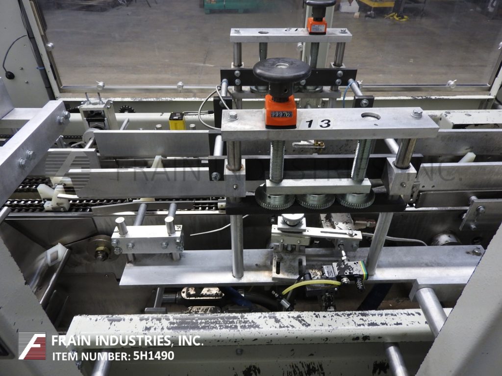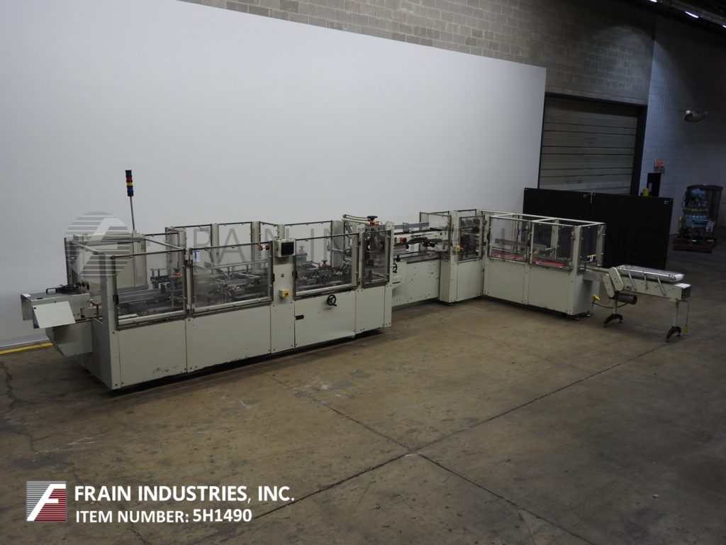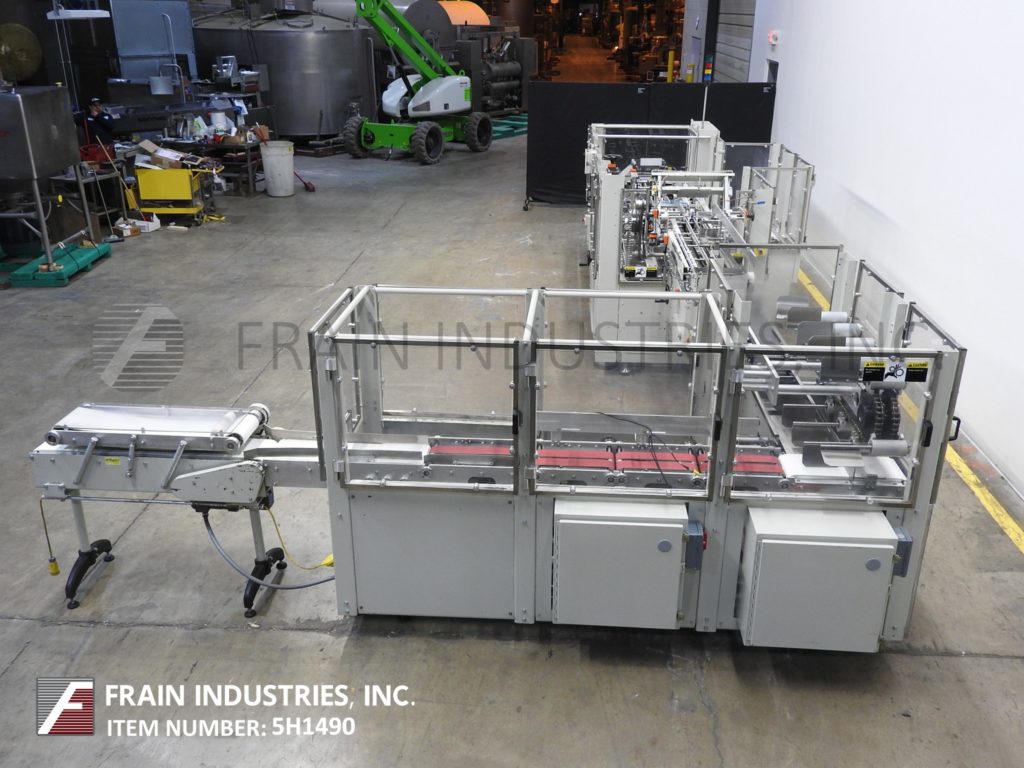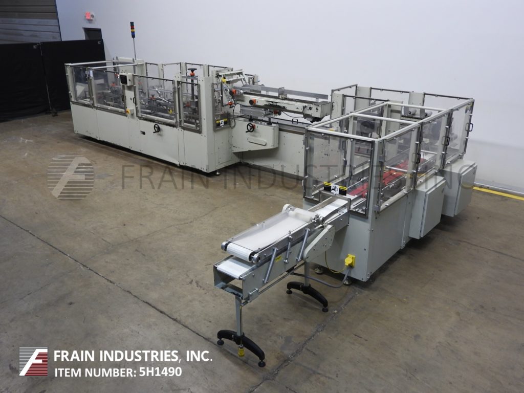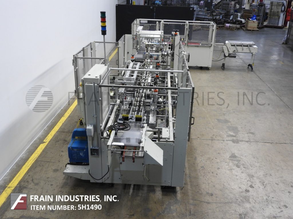 返回所有设备Kodiak,Model 910-120,自动,连续运动,水平,热熔胶胶合器,每分钟10到150箱 - 取决于材料和应用。纸箱尺寸范围:每个申请。配备4个链条可调9英寸的中心,带2-1 / 2“宽x 3”高凸耳和直角48“长产品压缩带到4带伺服在进料输送机上的4带伺服传送带,带有架空产品扫描组件进入7“长x 2”宽x 9-1 / 2“深固定产品桶。72”长(3)链自动纸箱杂志(3)头旋转镐和放置,无产品/无纸箱,顶部平方设备,旋转桶凸轮装载机,Nordson Problue热熔胶系统,次要和主要襟翼更近,带36“长压缩和放电带段,Seko仪表和状态灯棒。控制面板有一个/ B控制器,带PLS触摸板和A / B.面板视图控件。用互锁安全保护安装在重型基础框架上。