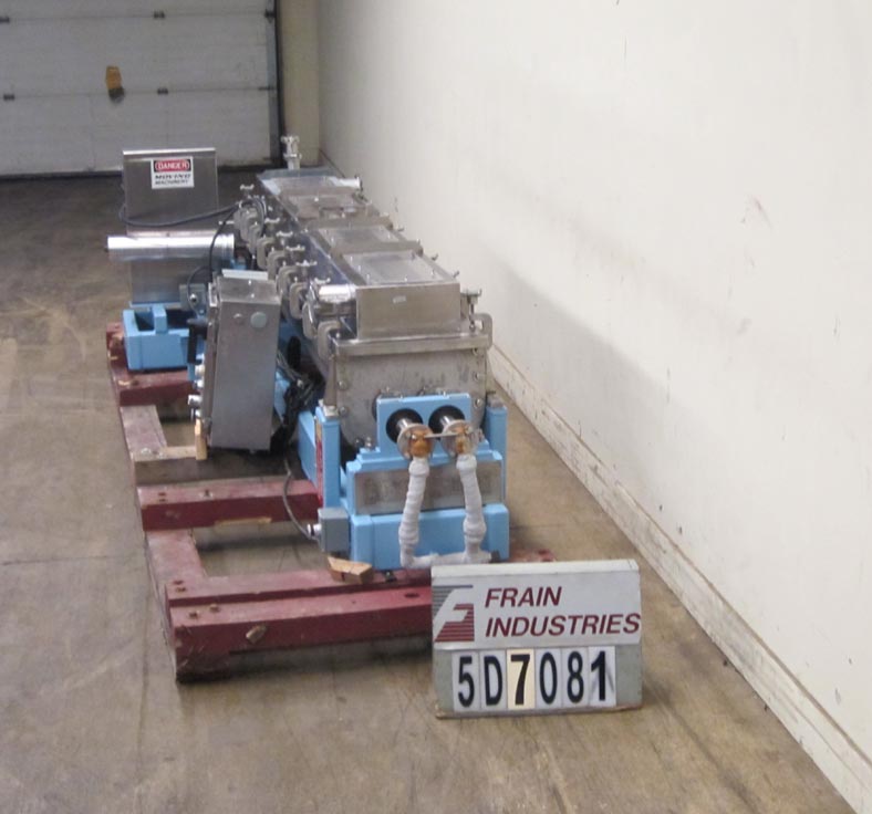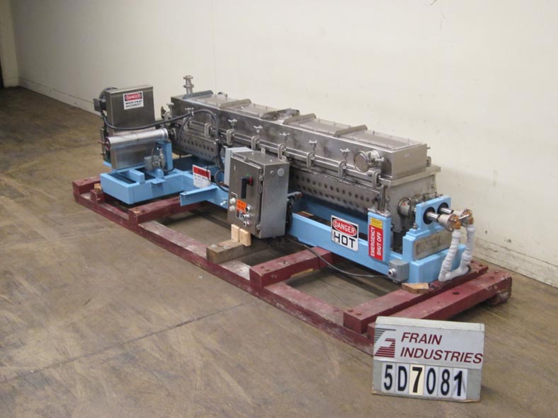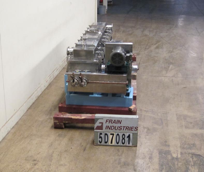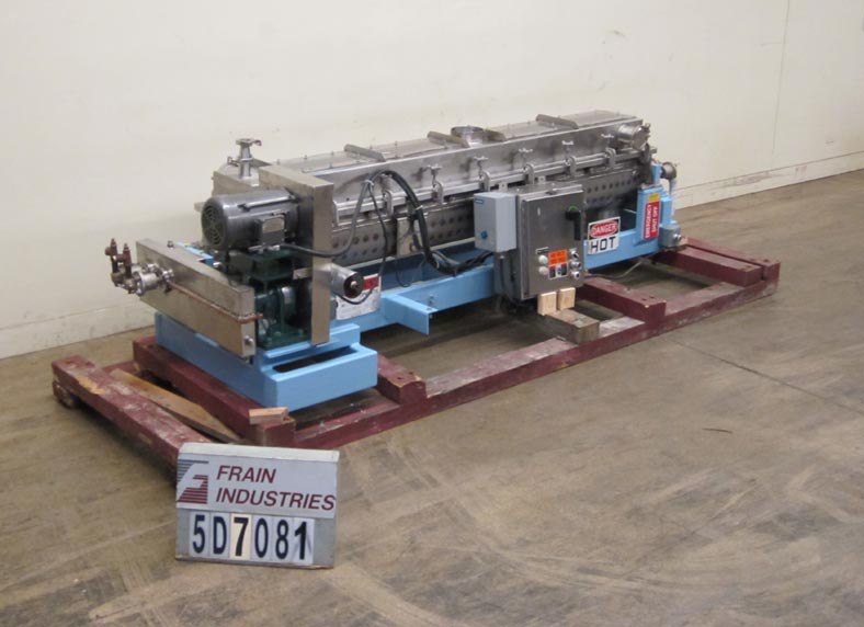 返回所有设备3 CU FT,316不锈钢,水平,搅拌机,烘干机,加热器,较冷却器,每小时卷 - 取决于材料和应用。配有96英寸的长x 12“宽x 17”深搅拌室,带4“OD x 96”长双反旋转不锈钢空心轴,带空心啮合桨。全套夹克和空心轴和桨额定到150psi @ 366 deg f,中空双反旋转轴和桨叶用于精确控制温度,传热,停留时间和高热效率。从过程质量中分离出热传递介质,蒸汽,油,热流体,水或二醇。1-3 / 4“和7”直径卫生顶部入口,(2)4-3 / 4“直径顶侧入口,6”长×6“宽端底部底部放电,e-stop,(4)可拆卸顶部安装lexan面板和5 HP UL电机驱动器。