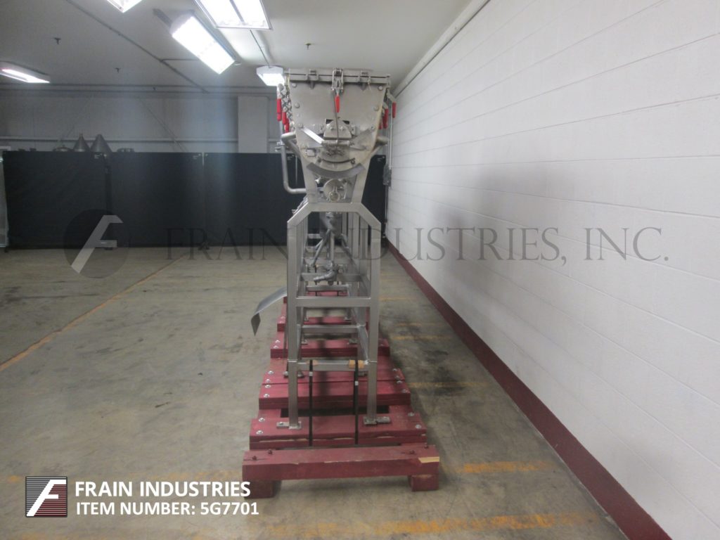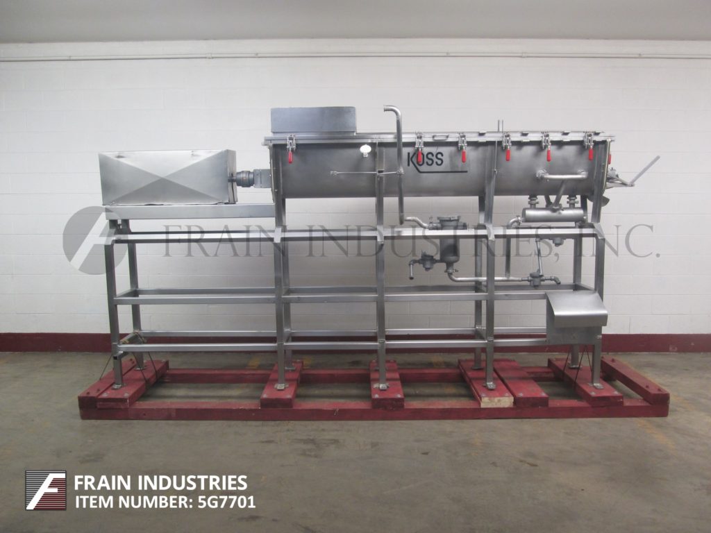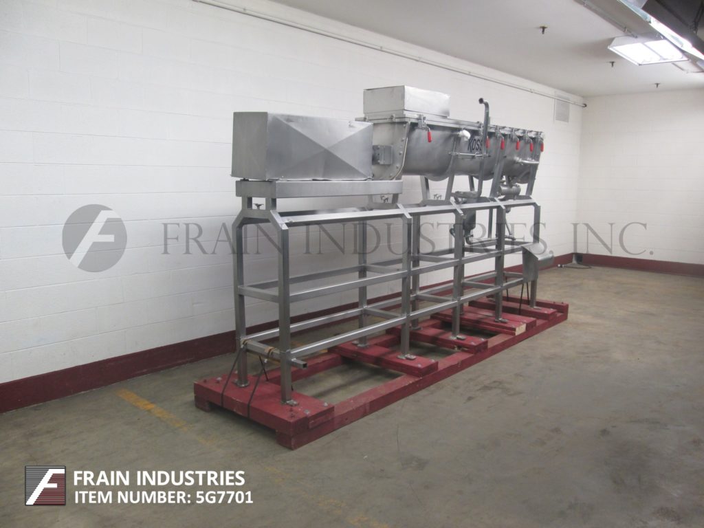 返回所有设备科斯,单螺杆,316不锈钢,直接蒸汽,间歇式蒸煮系统。每批产品的额定重量从100到600磅-取决于材料和应用。配备96”长x 15“宽x 18”深腔、热电偶套管、翻转螺栓顶部覆盖15“宽x 18”长的产品,11“直径螺钉3“OD轴由20 hp开车,2”OD / 1½”ID Tri-clamp风格蒸汽入口蒸汽过滤系统、5”x 3”最终产品出料槽与57”地板间隙。安装在(10)腿基础框架上。产品通过螺杆的旋转来输送。