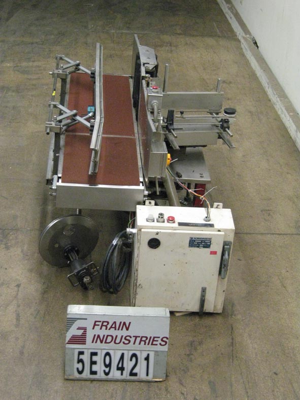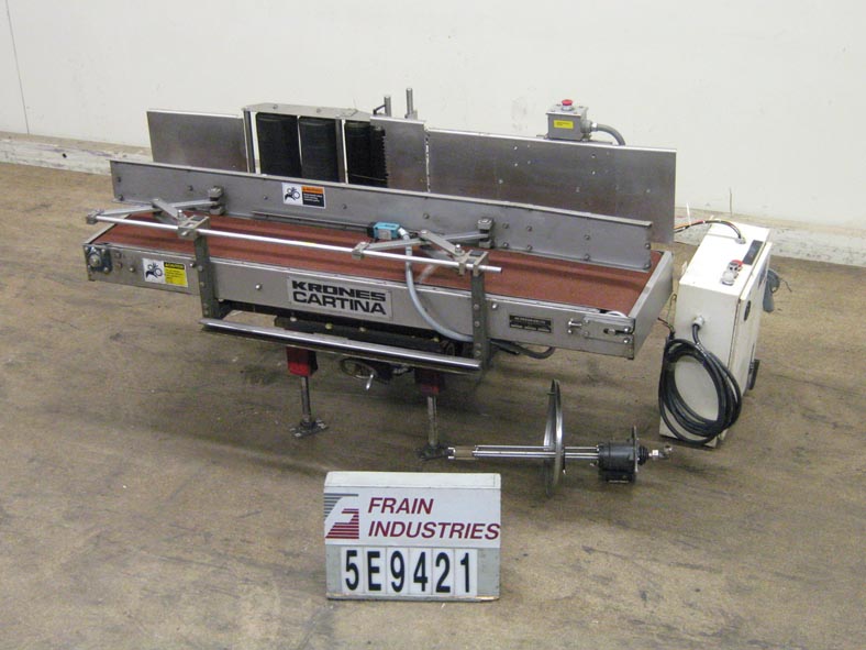 返回所有设备克朗斯卡蒂纳自动,冷胶,单面纸箱或箱标签额定从15到50个集装箱每分钟-取决于材料和应用。紧凑的列式设计有纸箱尺寸范围:长度5-1/8"至31-1/2" x宽度4-3/4"至17-1/2",最小/最大标签长度:2-2/3"至13- 3/8"长。配备77"长x 17-1/2"宽橡胶容器输送带,可调侧辊纸箱导轨和32"进/出高度。宽21“长x 14”标签杂志,目前集12-1/4”长削皮器板手指,12-1/4“长胶辊涂布系统和(2)12 1/4“长x 6”直径泡沫标签压辊,再循环胶泵5加仑胶容器和快速变化不同的纸箱和标签大小不使用工具。