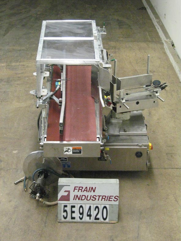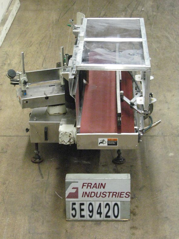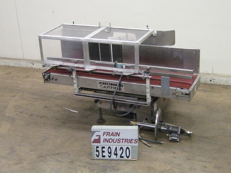 Back to All EquipmentKrones Cartina automatic, cold glue, case labeler capable of speeds from 15 to 50 containers per minute – depending on materials and application. Carton size range: 5-1/8" to 31-1/2" in Length; 4-3/4" to 17-1/2" in Width. Label size range: 2-2/3" to 13-3/8" in Length; up to 12-1/4" in Height. Equipped with 76" long container conveyor belt, with adjustable side roller carton guide, 21" long label magazine, cold glue supply pump, finger style glue transfer system, foam compression rollers and safety guarding and quick change over for different carton or label sizes without the use of tools.