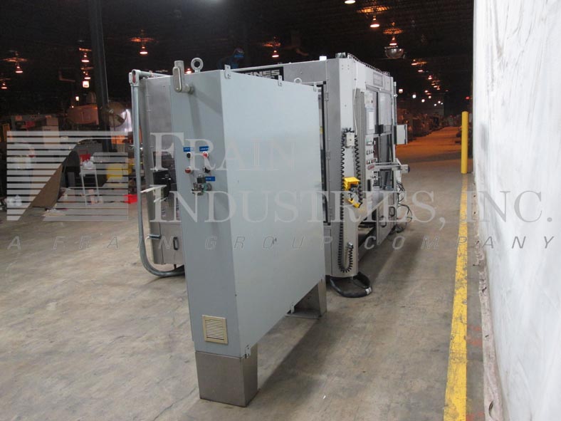 返回所有设备克朗斯型号Canmatic,自动,16头旋转,预切,包覆,热熔胶,标签额定从100到600个容器每分钟-取决于材料和应用。容器尺寸范围:2"至6"直径x 2"至9 3/4"高度。标签尺寸:长度6-1/2”到14-1/4 x 3”到8”的宽度。配备125 "长x 2-1/2"宽的进料/出料输送机与蜗杆螺杆星形轮进料和出料,(16)3-1/2"外径底部和(16)2-12"外径顶部产品底座设置在8"中心。(2) Norson ProBlue热熔胶单元,一个用刷子在标签上涂胶,另一个用刷子重叠在标签上。远程控制面板有A/B控制与A/B 1000 +面板视图和温度,输送机,在饲料和热熔控制器与启动,停止和e-停止和联锁安全保护。安装在重型框架上。