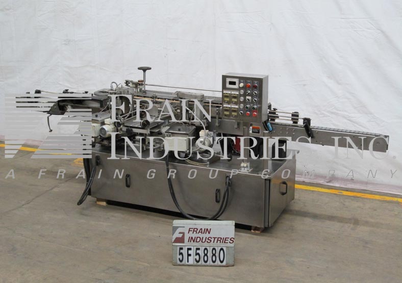 Back to All EquipmentKrones Rondella 88, automatic, inline, wraparound glue labeler rated from 50 to 400 containers per minute – depending on materials, application and machine configuration. Label size range: 6-1/2" to 17-7/8" in Length;1" to 7-7/8" in Height. Container size range: 2" to 5-1/8" in Diameter; 2-3/8" minimum in Height to maximum depending on application. Equipped with label magazine, 3-1/4" wide stainless steel conveyor, 70" long belt container handling system, two hot glue pots one for leading and one for trailing edge glue seams, 20" long wrap station and e-stops. Mounted on stainless steel base frame.