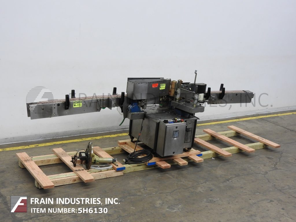 返回所有设备克朗斯,型号Rotina,自动,内线,热胶点或包装标签额定25至100个容器每分钟-取决于材料,应用和机器配置。容器尺寸范围:直径2 "至6½" ';至少3-1/8英寸的高度。每次申请的最高高度。标签尺寸范围:长度2¼“至14”;¼到8½”的高度。配备4½“宽德林输送机,蜗杆螺旋饲料,预切板材库存标签杂志,9”高冷胶轮系统和30“长x 9”高包装站。安装在基础框架与高度可调腿和脚轮。更换所需零件以适应不同的尺寸范围。