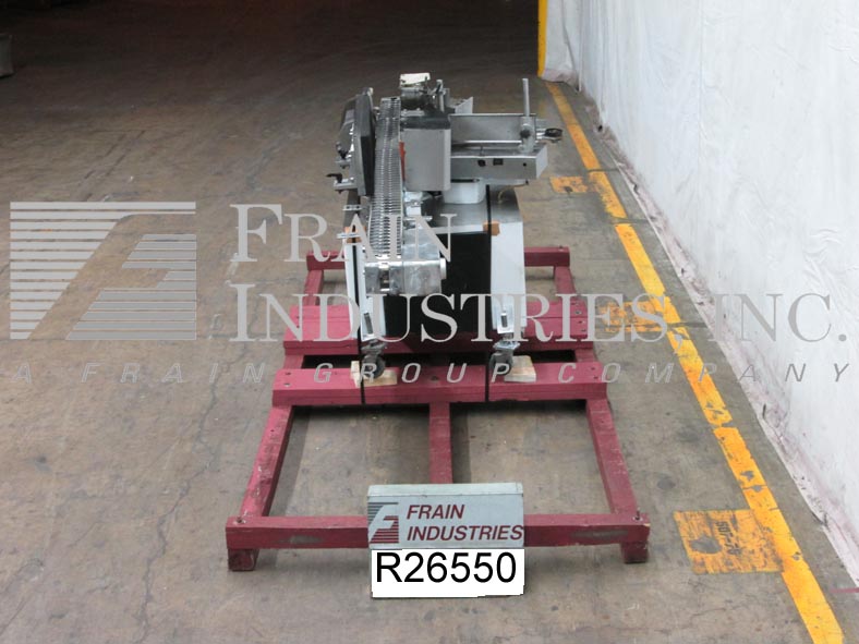 返回所有设备Krones Model Rotina II,自动,内联,冷胶带或包装贴图。每分钟50到135个容器 - 取决于材料,应用和机器配置。集装箱尺寸范围:直径2“至5英寸”;高度至少为3-1 / 8“。标签尺寸范围:2-1 / 4“至14英寸”;1/4至8-1 / 2“高度。配备108英寸长的4-1 / 2”宽不锈钢输送机,饲料中的蜗杆螺钉,预切片股票标签杂志,9“高胶水轮系统和30英寸长3英寸高包装站。安装在底架上,带有高度可调节的腿和脚轮。改变适应尺寸范围所需的部件。