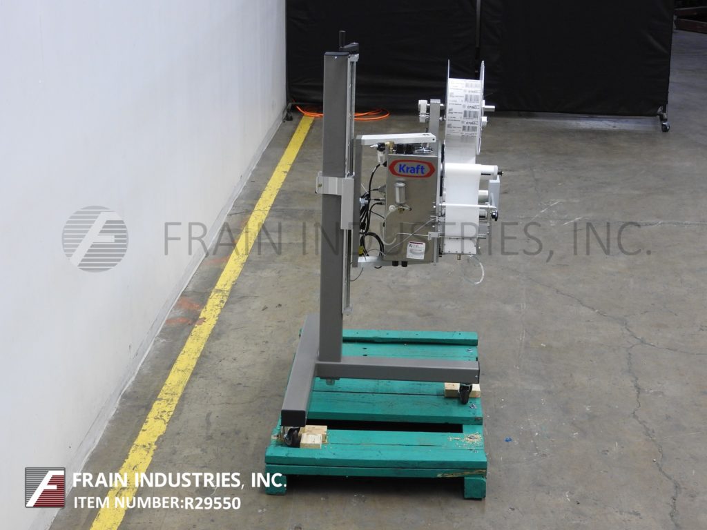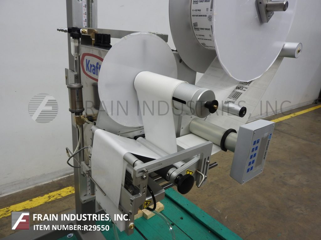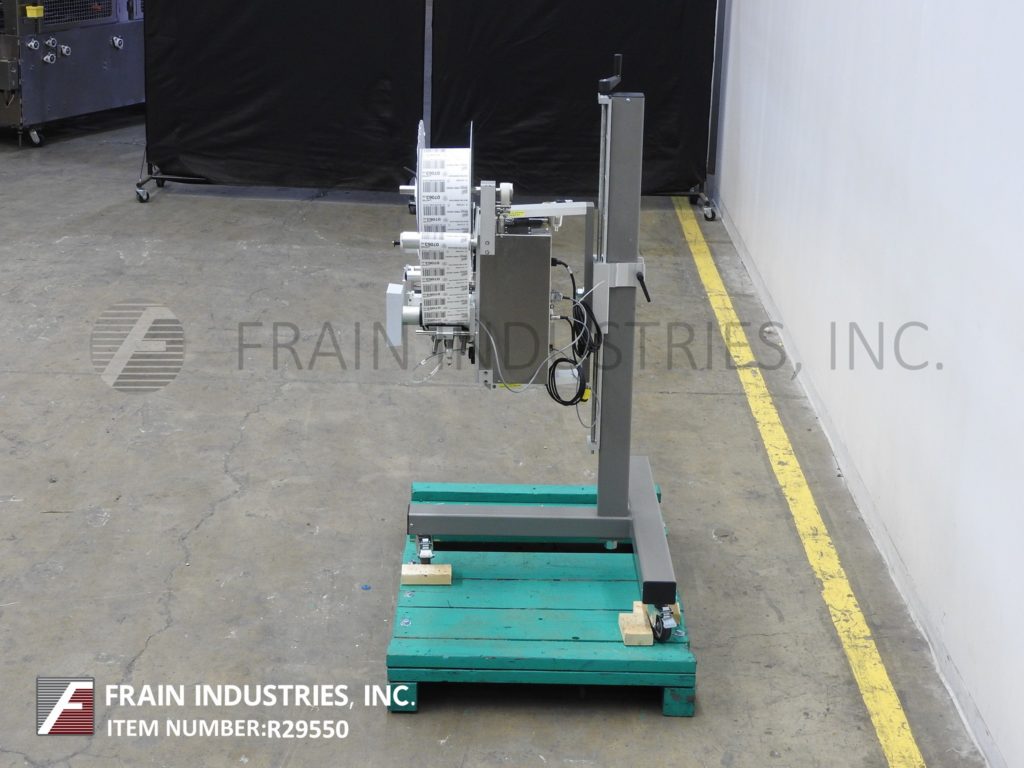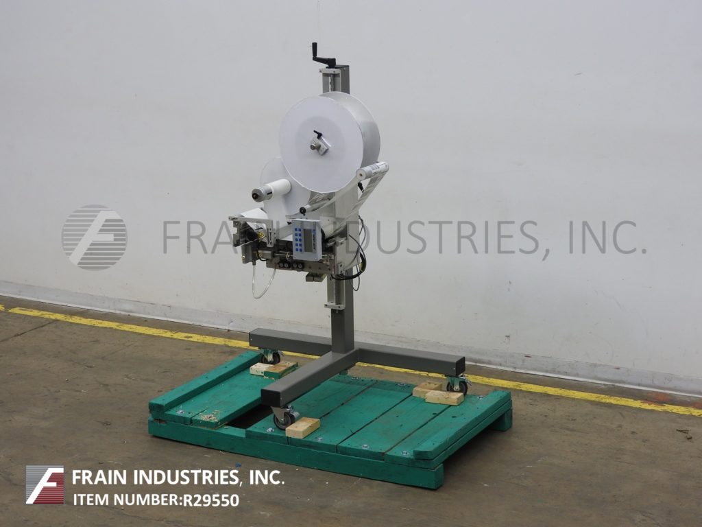 Back to All EquipmentLabel Aire Model 3114 NV 1500 7"x16" RH 1-10"ST pressure sensitive, blow tamp spot labeler rated from 600 to 1,500 linear inches per minute, with number of product – depending on materials and application. Equipped with swivel mounted bracket and blow tamp label head with label size range: 3/4" to 5" in Length; 3/4" to 4" in Width, with accuracies of +/- 1/32", and has 1" to 10" adjustable stroke with maximum 20" OD label roll and 20" OD label rewind with 3" ID cores and has stepper drive, with touch pad controller with R3 digital display. Mounted on hand crank height adjustable T-stand with casters. Can be converted to do left or right hand use as well as doing top, side or bottom labeling.