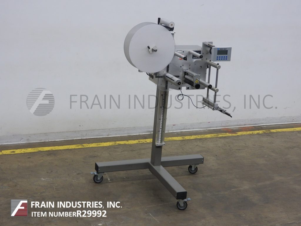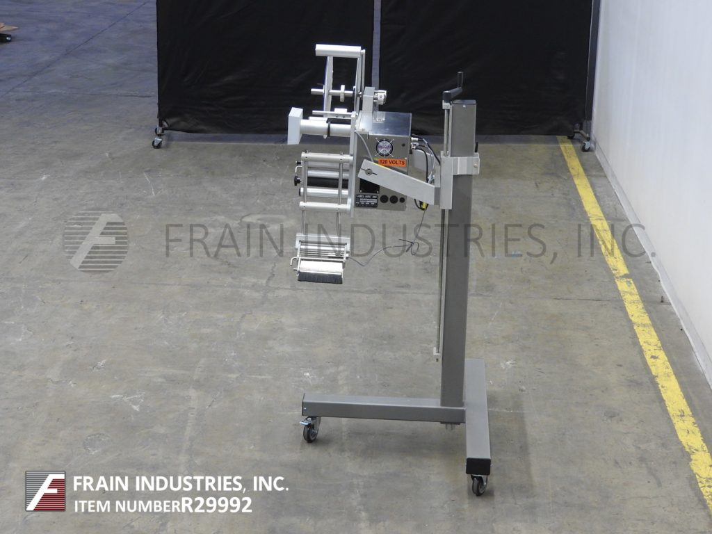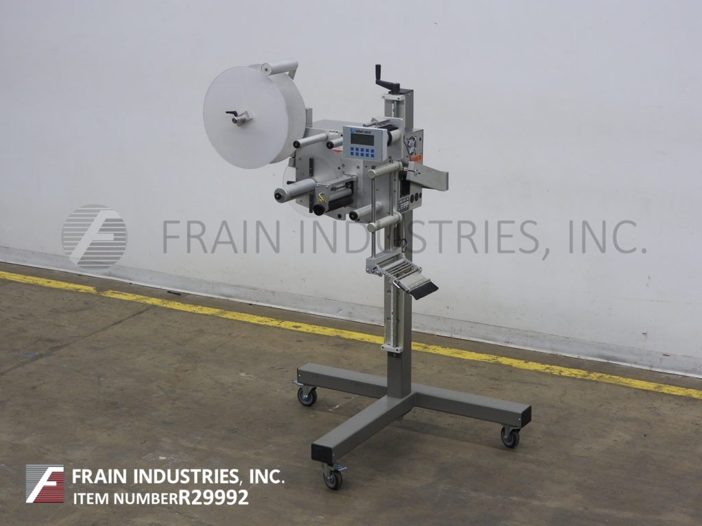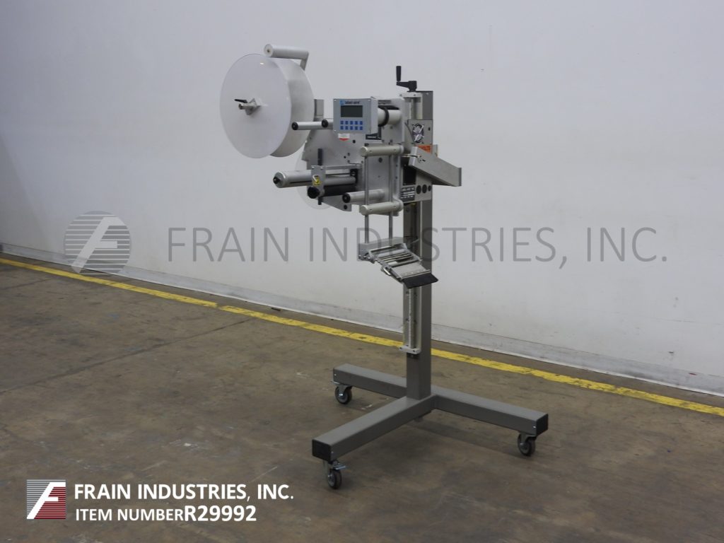 返回所有设备标签Aire型号3115 NV 1500 7“x16”RH压敏,擦点标签额定从600到1500线性英寸每分钟,与产品的数量-取决于材料和应用。配有旋转式支架,精度为+/- 1/32",行程1"至10"可调,最大20"外径标签卷和20"外径标签倒卷,3" ID芯,步进驱动,触控板控制器,R3数字显示。安装在手摇高度可调的t形支架与脚轮。可以转换为做左或右使用以及做顶部,侧面或底部标签。