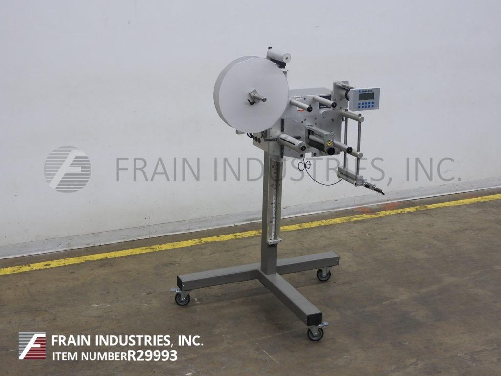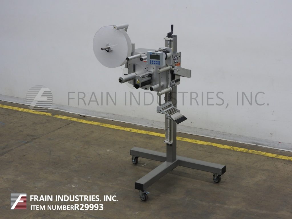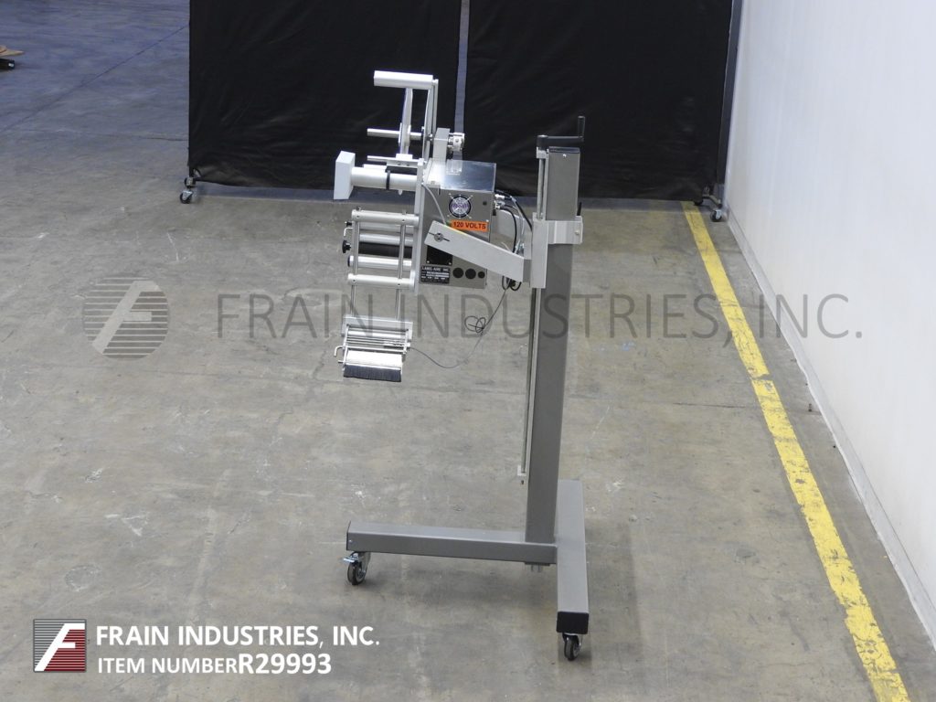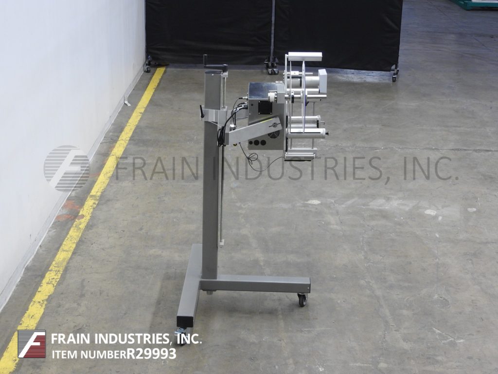 返回所有设备标签Aire型号3115 NV 1500 7“x16”RH压敏,擦点标签额定从600到1500线性英寸每分钟,与产品的数量-取决于材料和应用。配有旋转式支架,精度为+/- 1/32",行程1"至10"可调,最大20"外径标签卷和20"外径标签倒卷,3" ID芯,步进驱动,触控板控制器,R3数字显示。安装在手摇高度可调的t形支架与脚轮。可以转换为做左或右使用以及做顶部,侧面或底部标签。