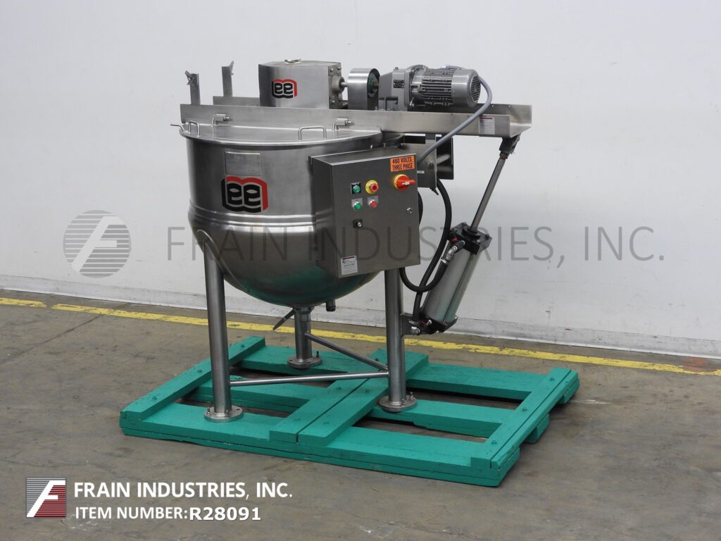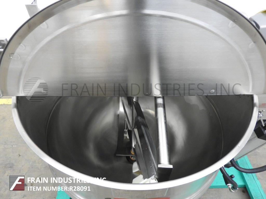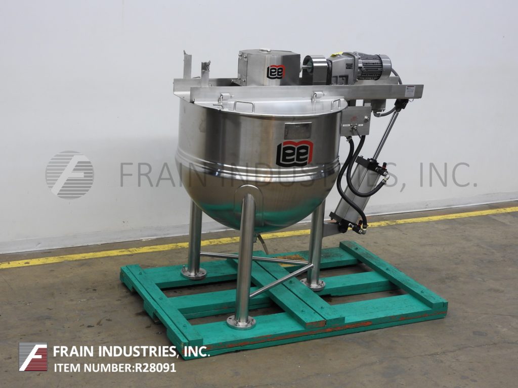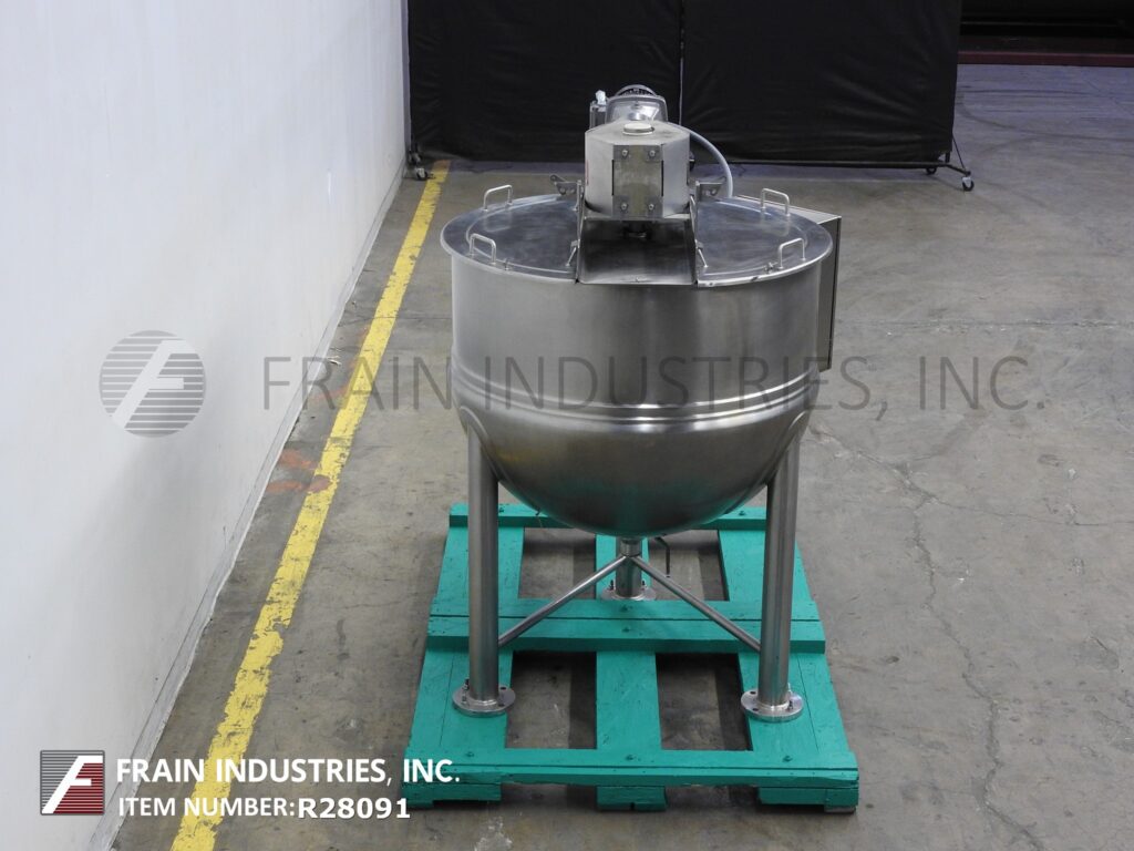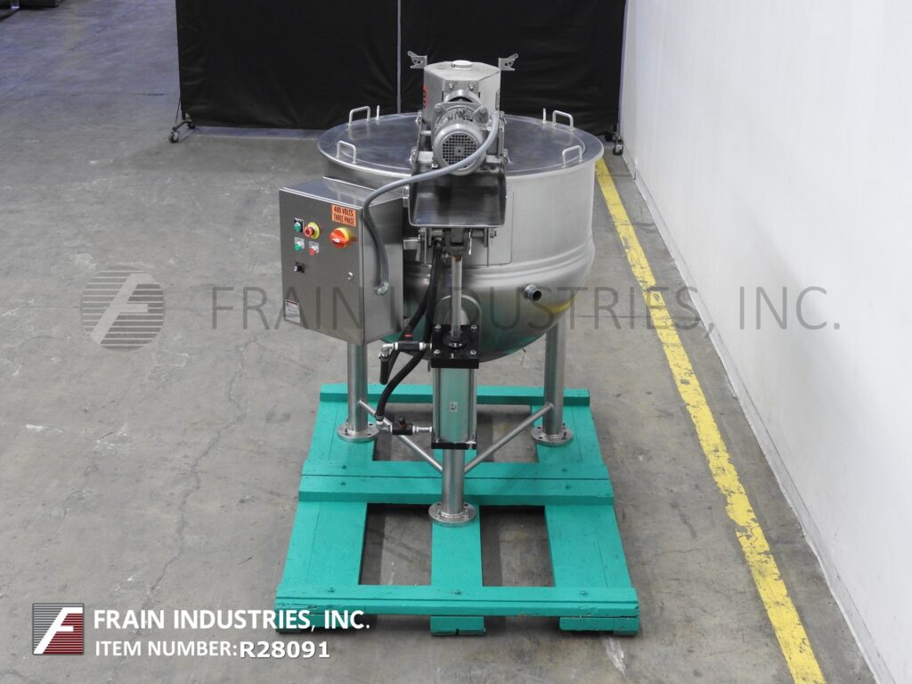 返回所有设备李,型号150D9MT, 316不锈钢夹套水壶。容器尺寸:42"直径x 34"深,15"直壁。配备了一个平置传感器,倾斜桥式刮泥搅拌器,由一个2马力变速驱动和2½“OD / 2”ID三夹式卸料,带球阀和15“地间隙。安装在(3)管腿框架上。