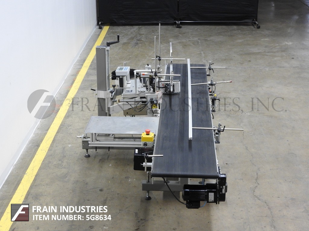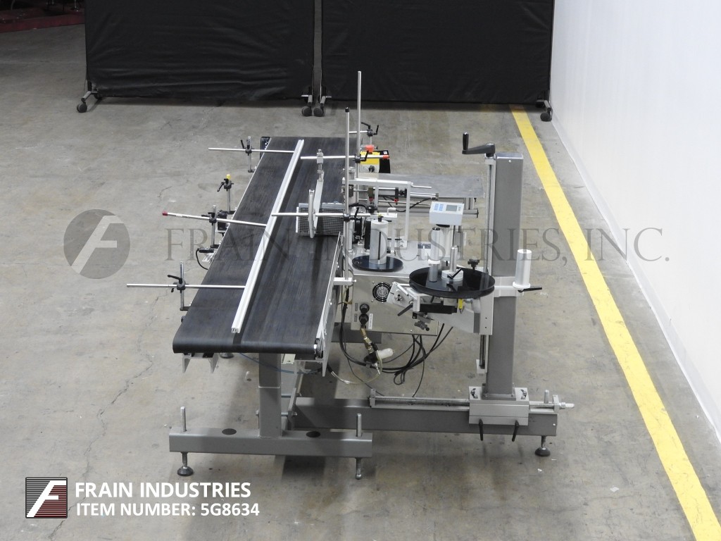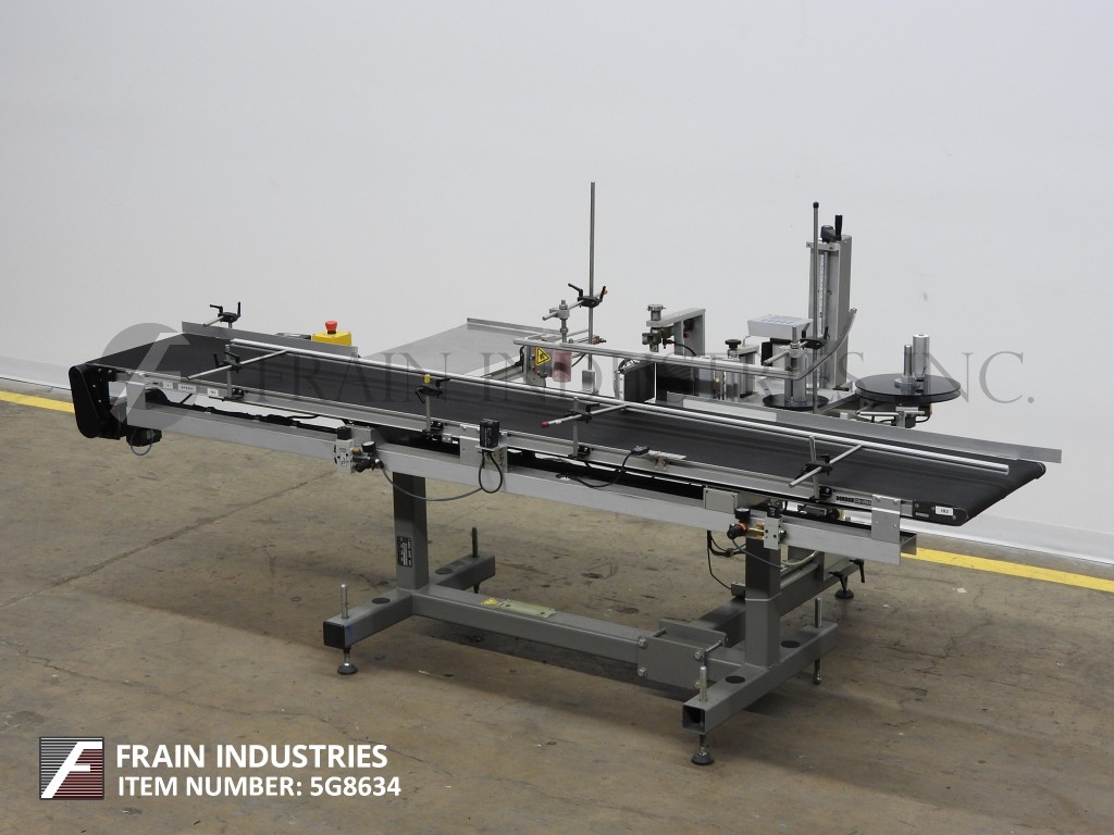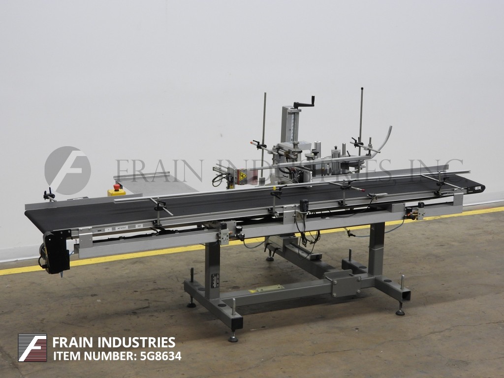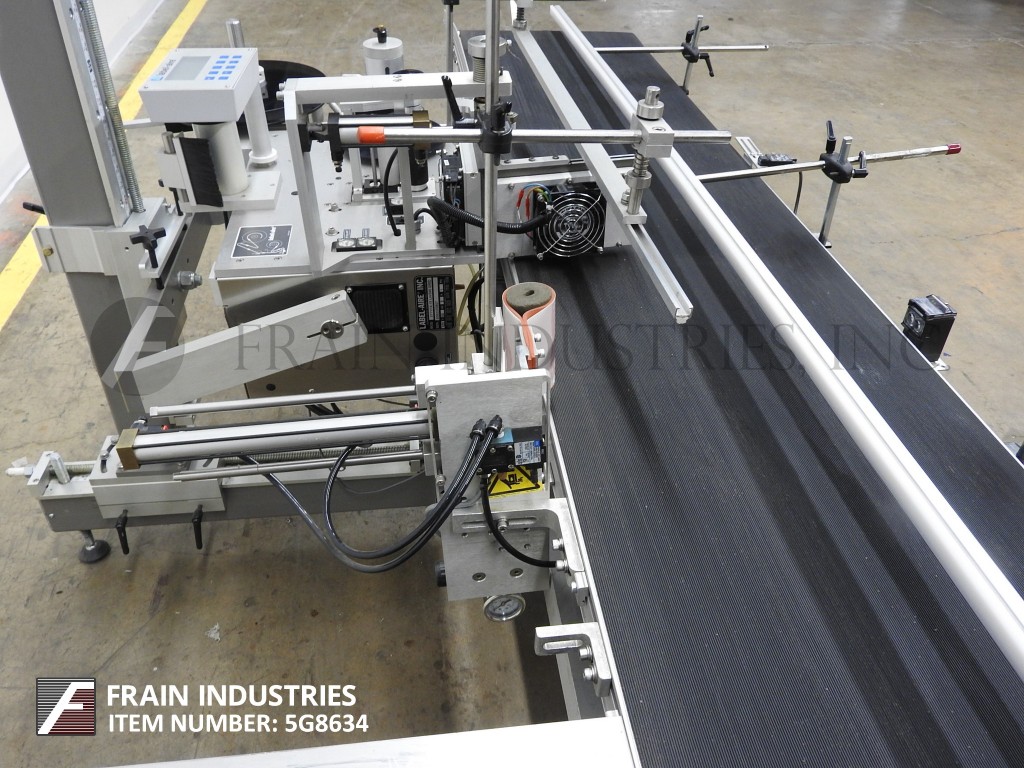 返回所有设备标签Aire,型号3111/14-15 LH/SW格栅,压敏,转角点标签。额定从100到2000线英寸每分钟与产品数量-取决于材料,应用和机器配置。配有旋转安装支架,标签头和标签尺寸范围:长度为3 / 4“到12”;3 / 4“到4”宽度,具有合适的更换部件和精度:±1/32“,12”外径标签卷,3”芯和8”外径电源标签卷。用气动90°真空格栅板将标签正面压实,摆动臂绕角擦拭臂将标签正面压平。步进驱动,触摸式控制器,数字显示。安装在18“宽x 120”长的带式输送机与水平腿。