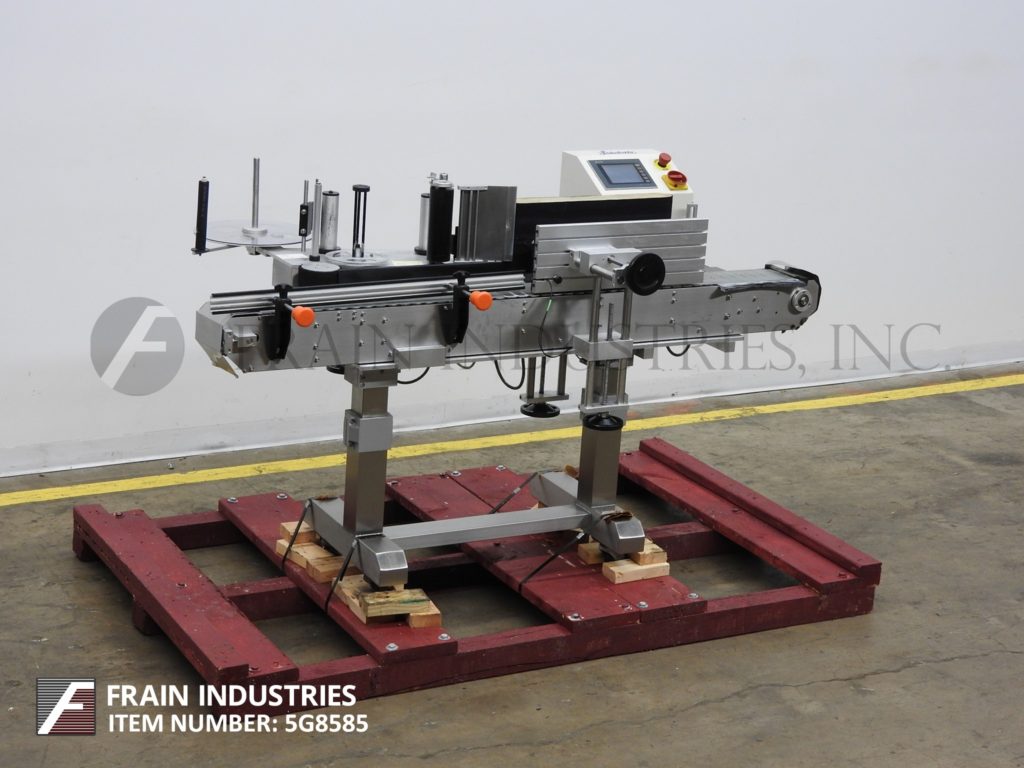 返回所有设备标签,型号24-APS-108,自动,在线不锈钢,压力敏感,步进驱动包装标签。额定20至175个集装箱每分钟-取决于材料,应用和机器配置。标签尺寸范围:½“至11”长度;3 / 4“到8”的高度。容器尺寸:(7/8)“到直径6¼”。配备72"长x 6"宽德龙输送机可调节导轨,间隔轮,9"高标签剥皮板和22"长x 9"高皮带包装站。触摸屏控制器,具有读数和E-stop功能。安装在带脚轮的不锈钢底座上。标签卷:14"外径3"芯。