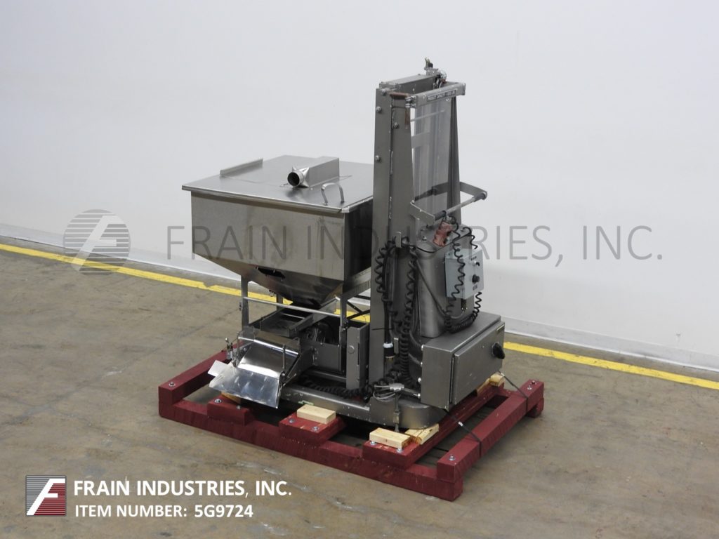 返回所有设备Lakso,型号73,不锈钢料斗进料器和提升机。配备36英寸长的x 36“宽x 25”深不锈钢料斗,带升降盖和7“宽x 19”长振动进料输送机。料斗安装在升上7½“至52”的升降机上。控制面板带按钮上/向下,开/关开关和变速拨号。