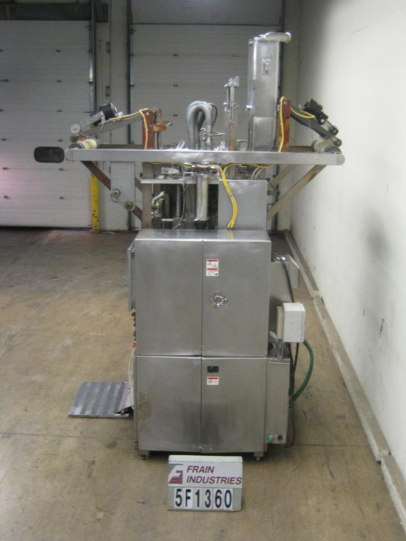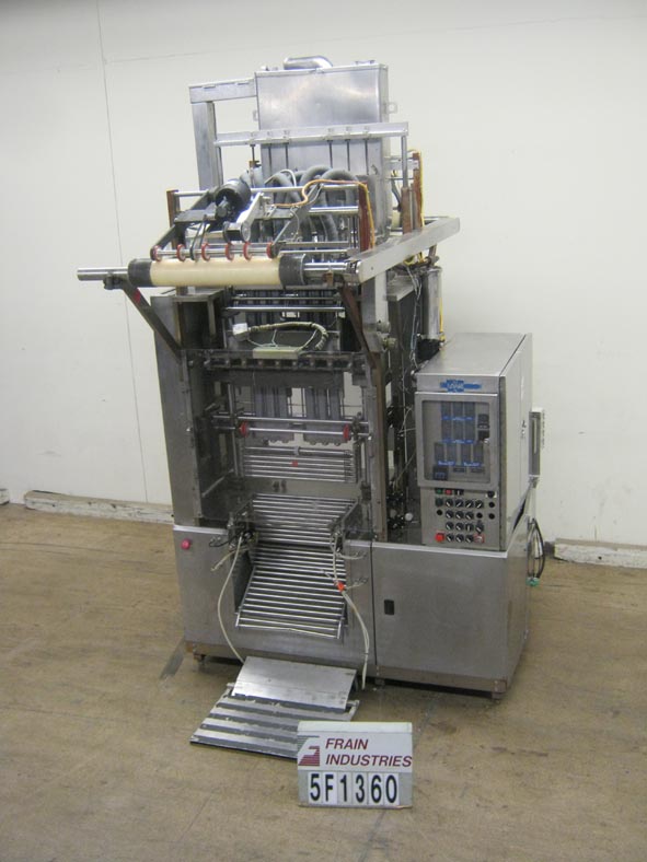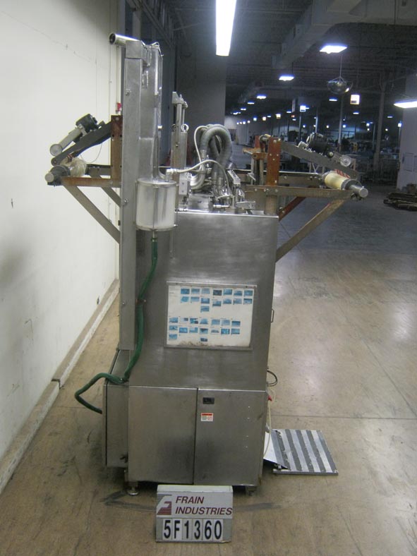 返回所有设备莱恩型号L25,立式,不锈钢,四边成型,灌装和封口机额定每分钟10到50次,袋的数量取决于材料和应用。袋大小范围:4"至25"的宽度;长度为6-1/4英寸至无限。填充体积范围:4盎司到5加仑颗粒:1-1/2平方与适当的更换部件。温度范围:40°至210°f,更换适当的部件。配备双膜芯轴与动力unwind,不锈钢分裂产品料斗,(6)3-3/8 ID x 10"长活塞,薄膜拉辊,垂直侧密封钳,侧分切器,热刀十字密封钳和袋放气器。PLC与薄膜饲料,热封,袋平气器,泵,薄膜饲料,产品计数器控制和真空系统。薄膜规格:(2)最大薄膜宽度为25”,最大薄膜直径为30”的卷筒。安装在重型框架上。