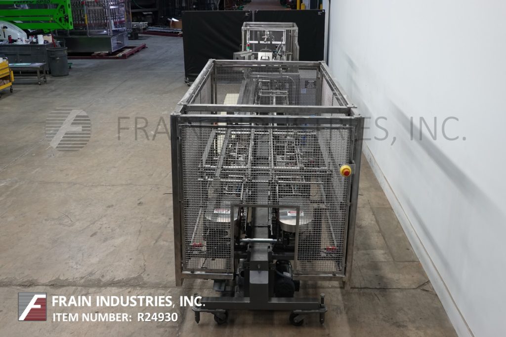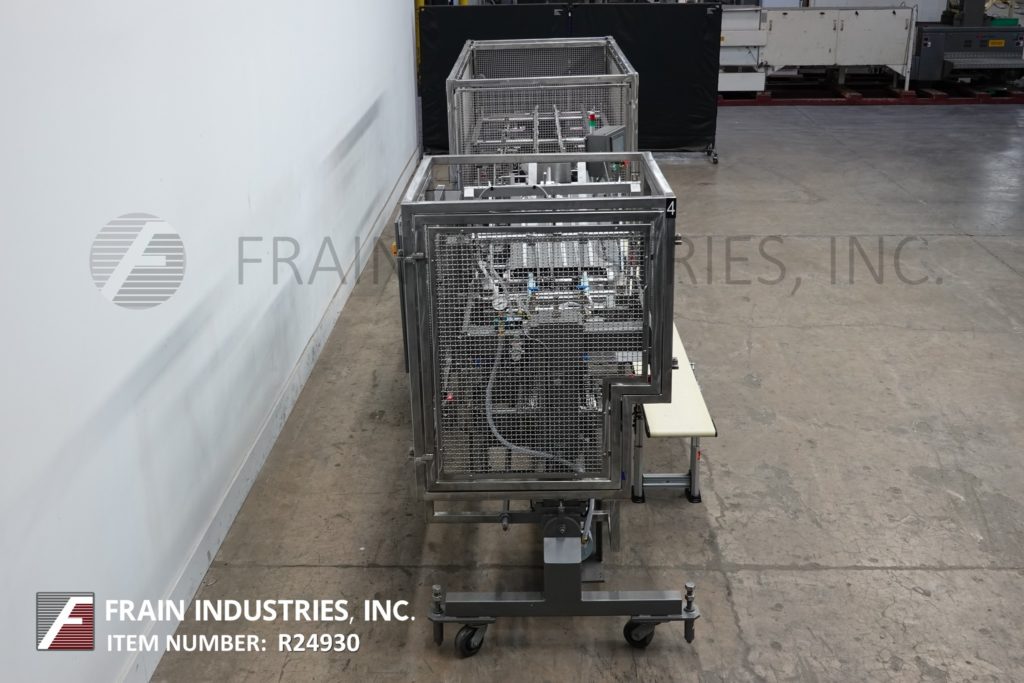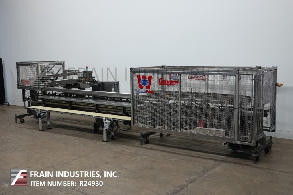返回所有设备朗根B1型,半自动,水平,连续运动,热熔胶纸箱额定20至80箱每分钟-速度取决于材料,应用和操作熟练度。纸箱尺寸范围:长度1-3/4"至14";宽度1/2“到6”;深度4"至14"。配备4链可调设置在18"中心和1"高x 2"长耳,空白纸箱杂志,1头往复真空挑选n地方,延长12 '长的负载区域,纸箱方轨,两枪热熔胶系统与模式控制器,压缩排放和真空系统与泵。控制面板与启动机慢跑,胶枪盒,真空泵,控制与e-stop。可倾斜的框架重力辅助产品装载。安装在基础框架与脚轮和高度可调的水平腿
