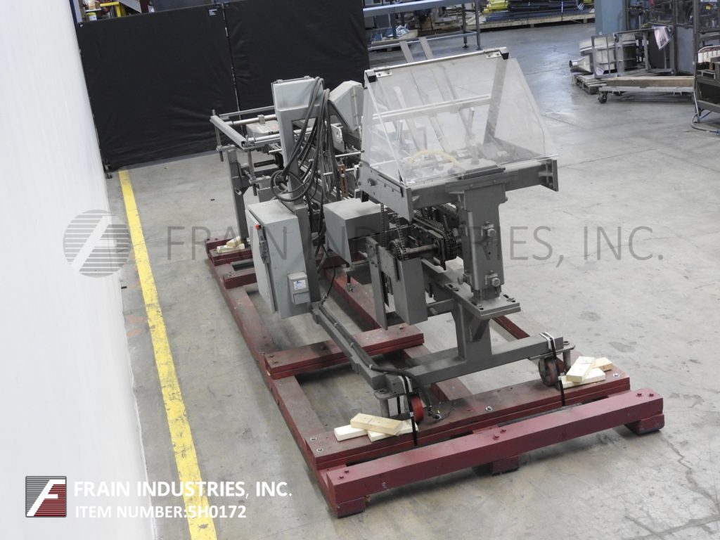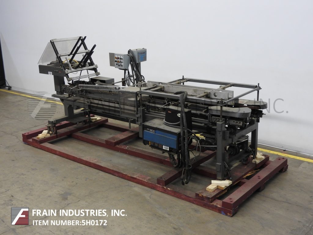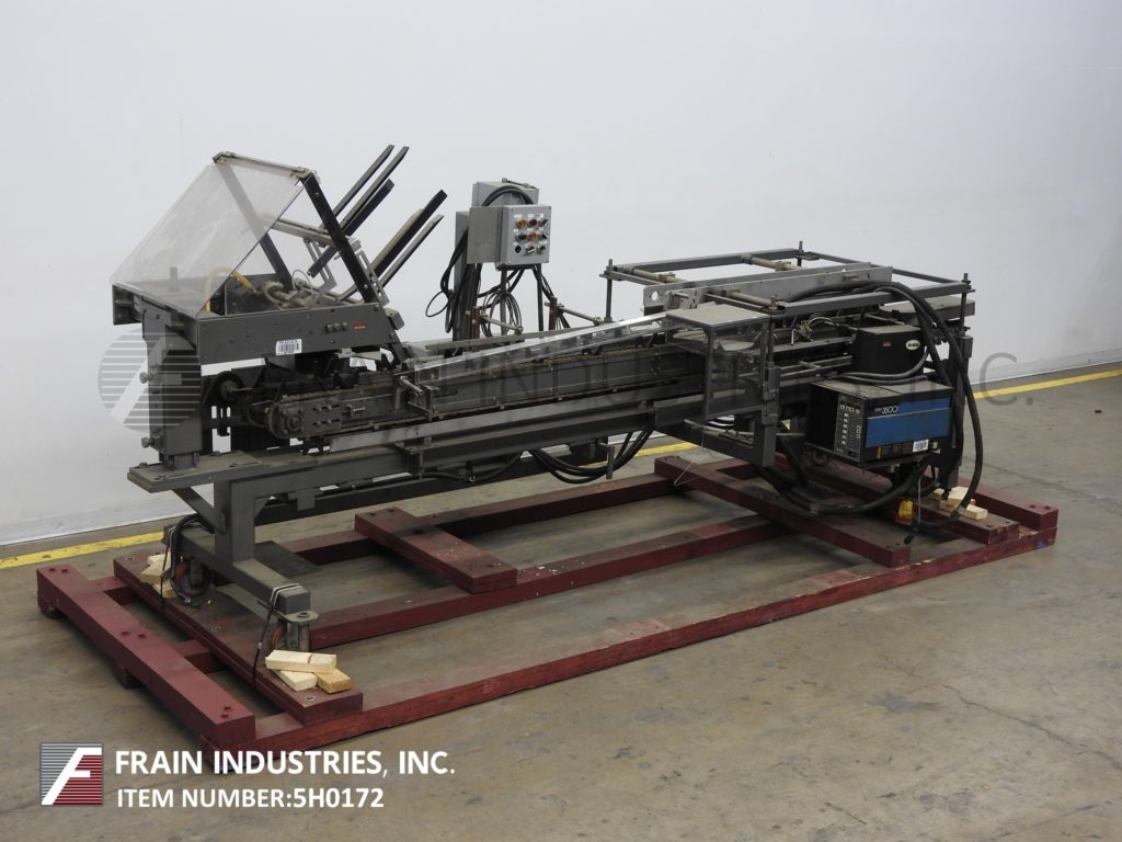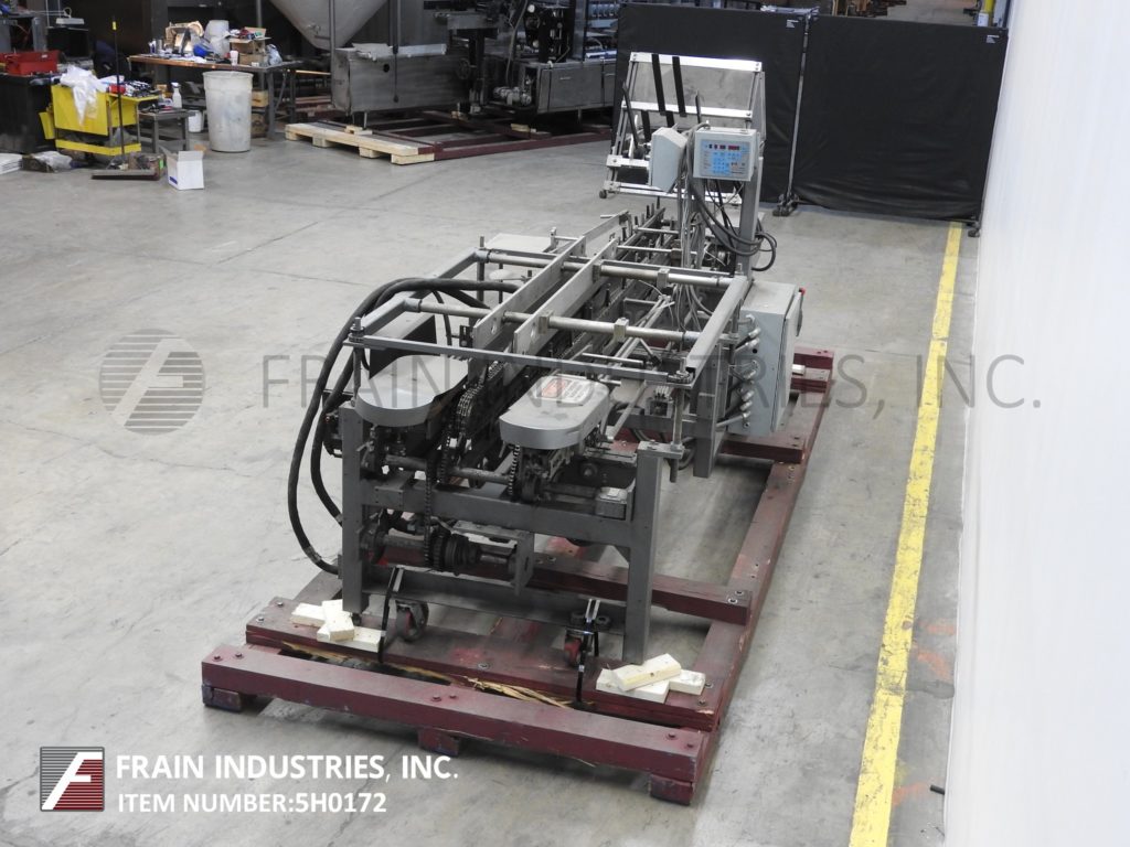 返回所有设备朗根,B1型,半自动,连续运动,卧式,热熔胶纸箱。根据材料、应用和机器配置,每分钟可装40 - 120箱。纸箱尺寸范围:1¾“至9¾”长度;½"至6"宽度;深度3¾“至14”。配备(4)链可调设置12日”中心,2”长x 3“高凸耳,20”空白纸箱杂志,2头旋转真空图片n, 48”长的产品受压面积,调整系统,主要的皮瓣犁,小皮瓣意见,Nordsen热熔胶系统和真空系统。具有启动/停止、慢跑/运行、胶水开关和真空泵开关的控制面板。安装在基础框架与高度可调腿和脚轮。